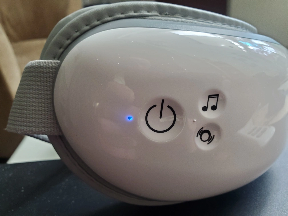 Eye massager. Features a sleek white design and comes with a remote control. There are many uses for the eye massager, including help for headaches, eye stress, strain. It's in like new condition and comes with a charging cable. 40.00