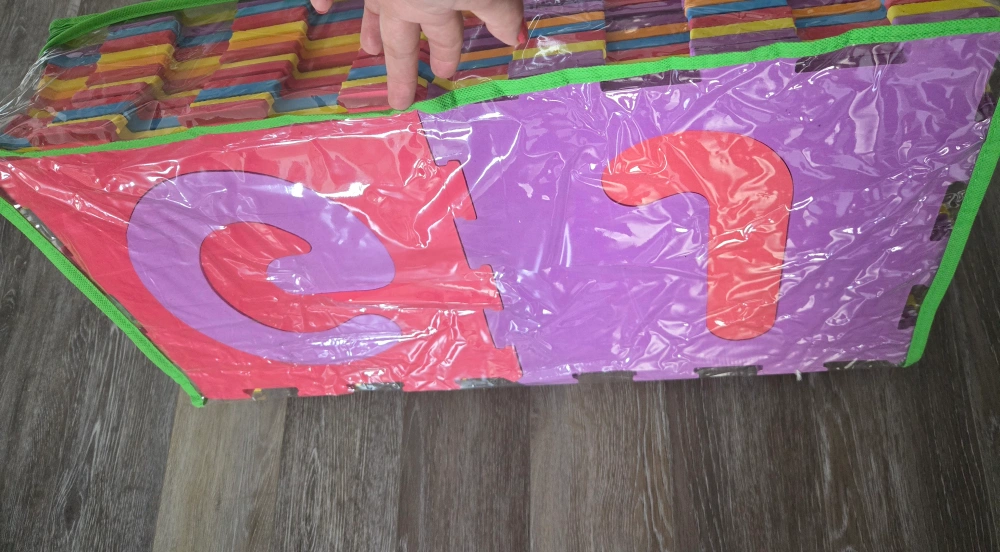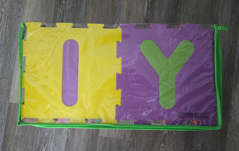 Alphabet puzzle play mat in bag. Great for playtime and helps develop their cognitive abilities.