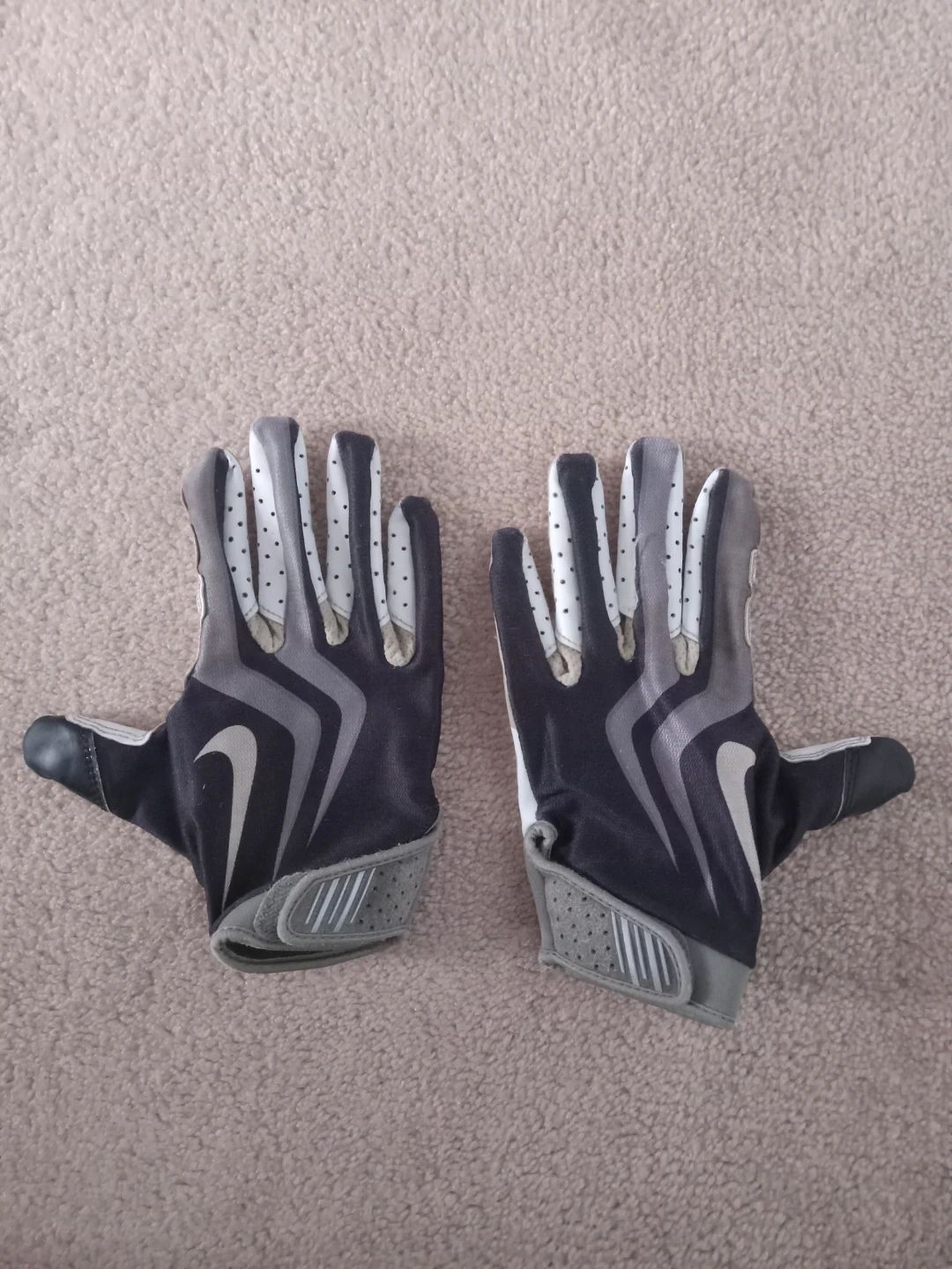 Nike football gloves in black and grey. They're made for grip and performance on the field. These gloves are suitable for playing football. Get a secure grip!