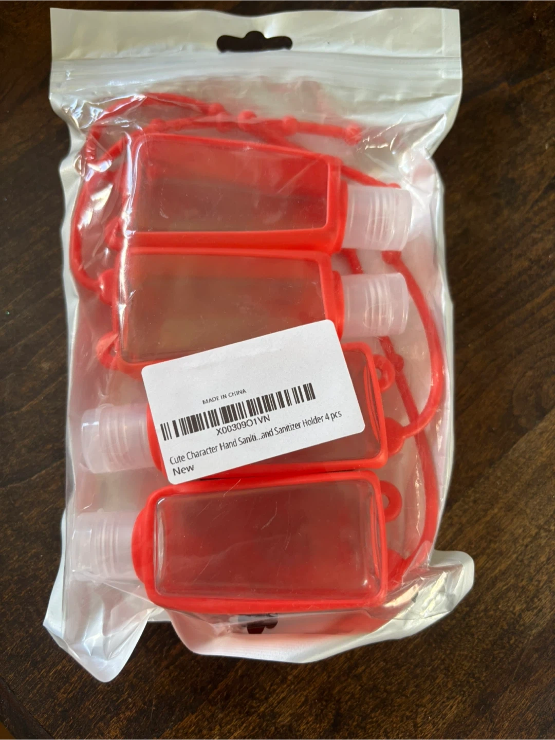 7 bag Set of 4 cute character hand sanitizer holders. Red coloured, each comes with a lanyard. Perfect for on-the-go use! $5 each
