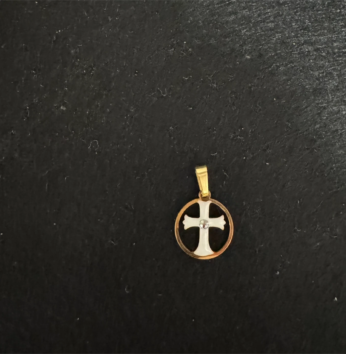πSnow White Enameled Cross W Clear Gemstone