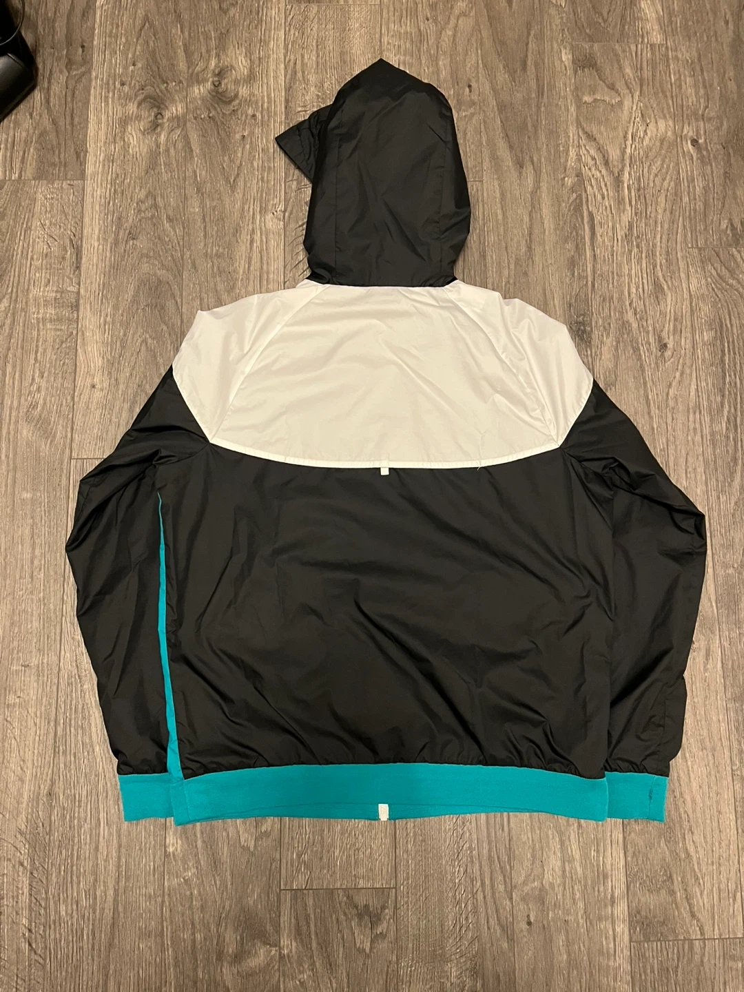 Selling a Nike Windrunner jacket in excellent condition! It's a size L with a black, white, and teal colour scheme. Perfect for layering or wearing on its own during those breezy days!