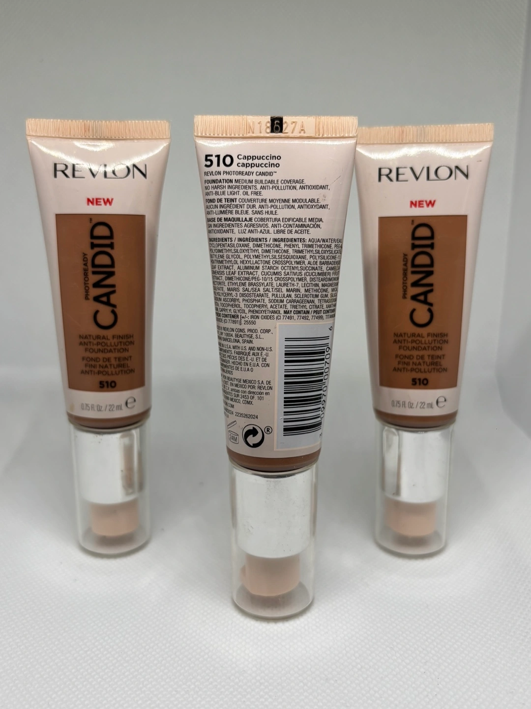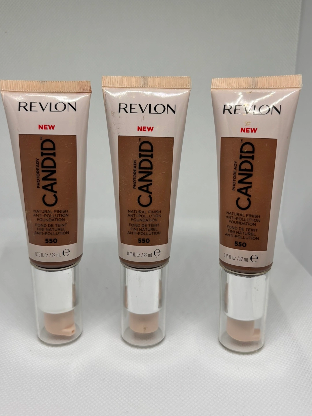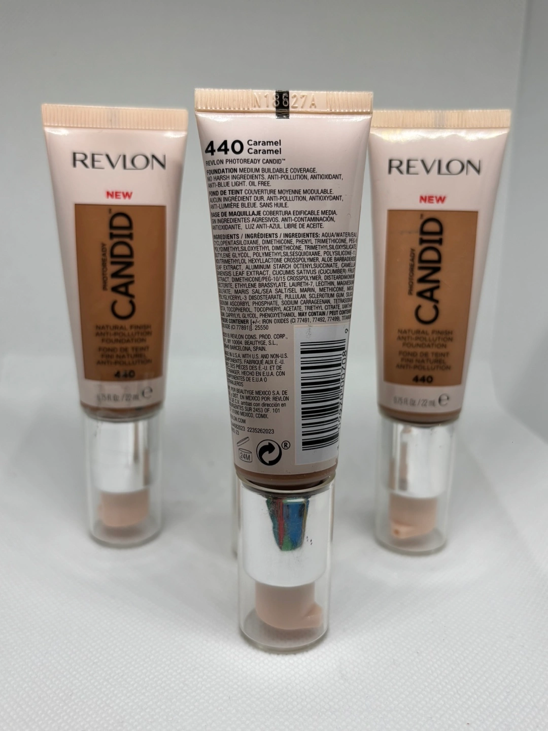 Revlon foundation. Feature a beige tube with a pump. Each tube has a different shade, and a natural finish. You'll love the way these blend into your skin, leaving you feeling refreshed and ready to take on the day.