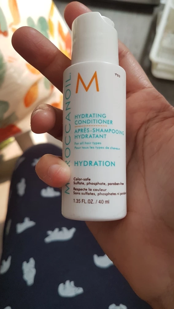 A small bottle of hydrating conditioner. Contains a pump. Great for on-the-go hair care to keep your hair feeling soft and fresh.