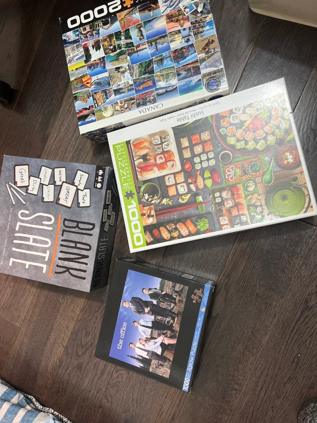 Multiple puzzles featuring varying themes. Also includes a board game. A perfect way to relax and unwind.