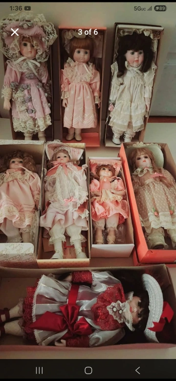 23Dolls in various styles and colors. Each doll comes with detailed outfits. Perfect to display in a doll collection to bring a sense of peace.very collectible 30 dollars each