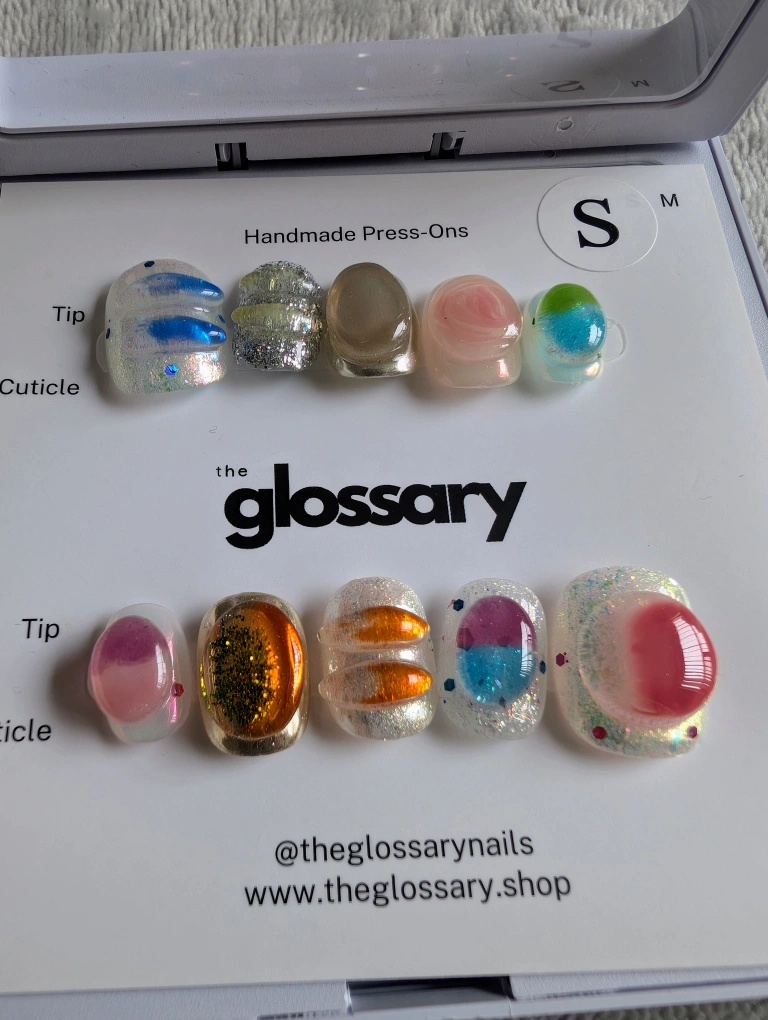 Beautiful set of press-on nails. Opened to show. I bought the wrong size, so selling it. price is firm