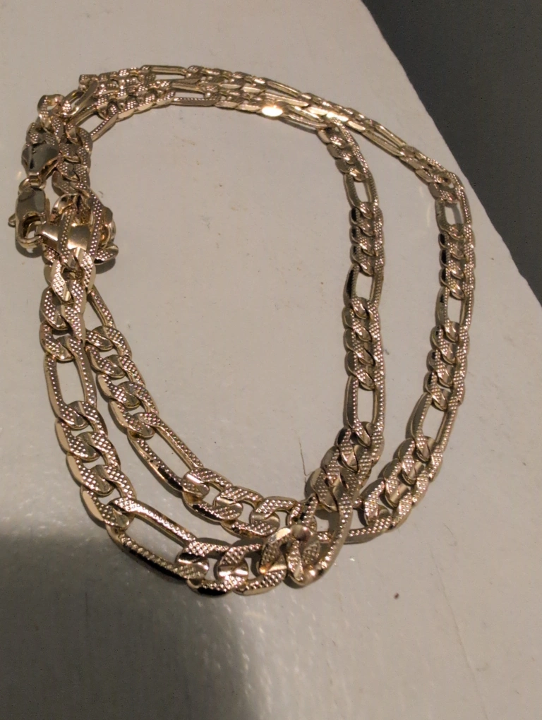 A beautiful gold plated chain necklace. Features a Figaro chain design. A lovely piece to wear when you want to feel a little bit more confident.