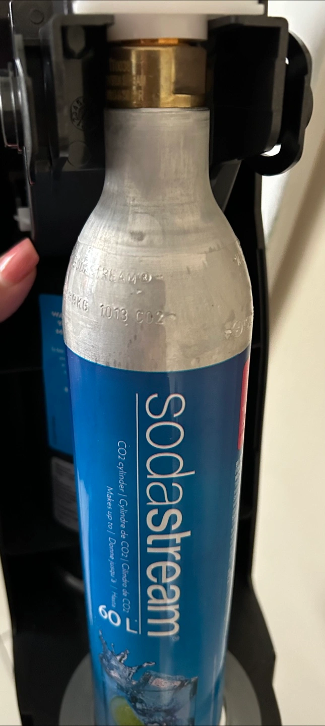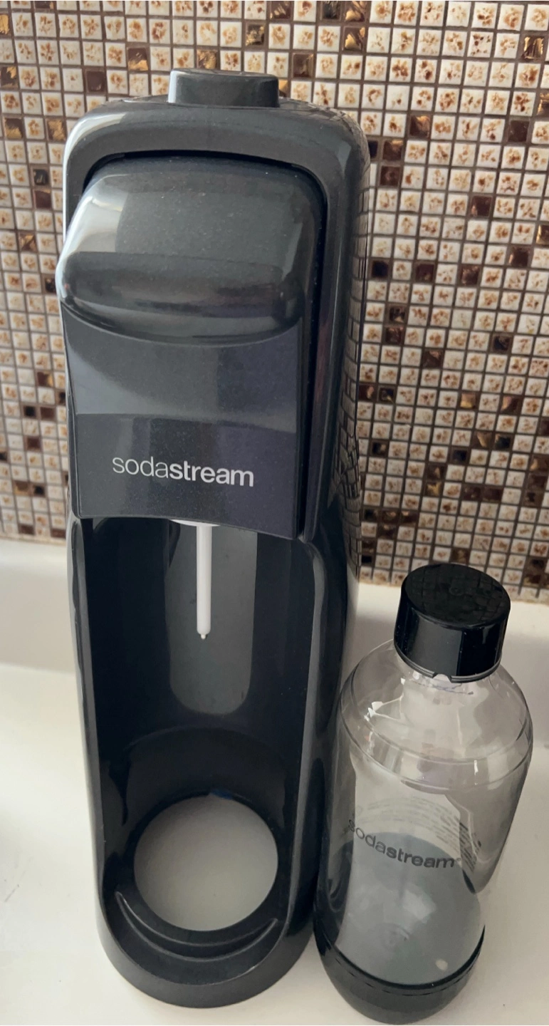 Like new black SodaStream sparkling water maker. It includes a CO2 Cylinder and 1L dishwasher safe bottle. Used it 3x to have sparkling water with ice with some lemon slices. You can buy flavoured syrup too if that is your preference. It is in excellent condition. I just don’t use it as much as I thought I would. Enjoy making your own sparkling water at home! You’ll never be so excited about a kitchen gadget. 😊