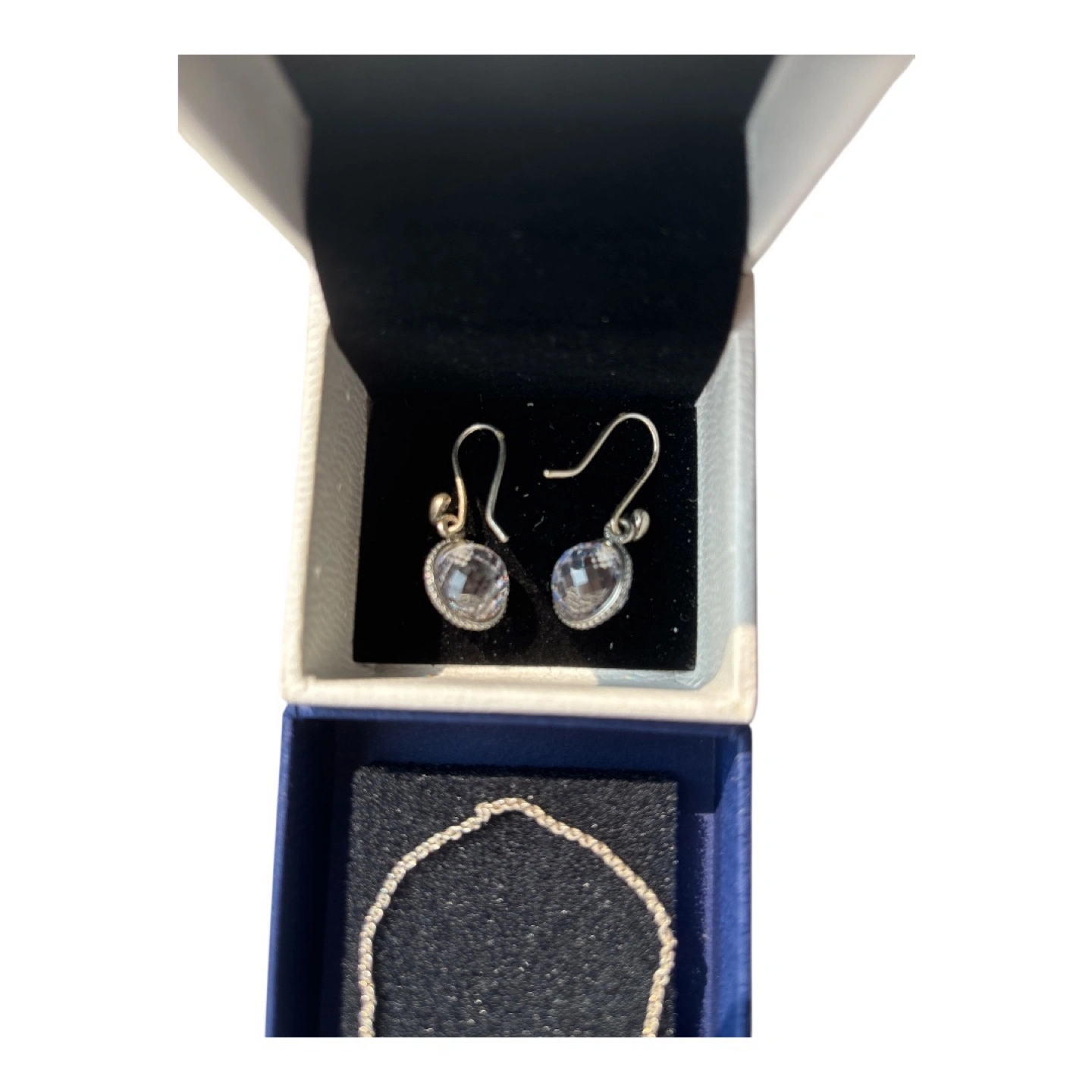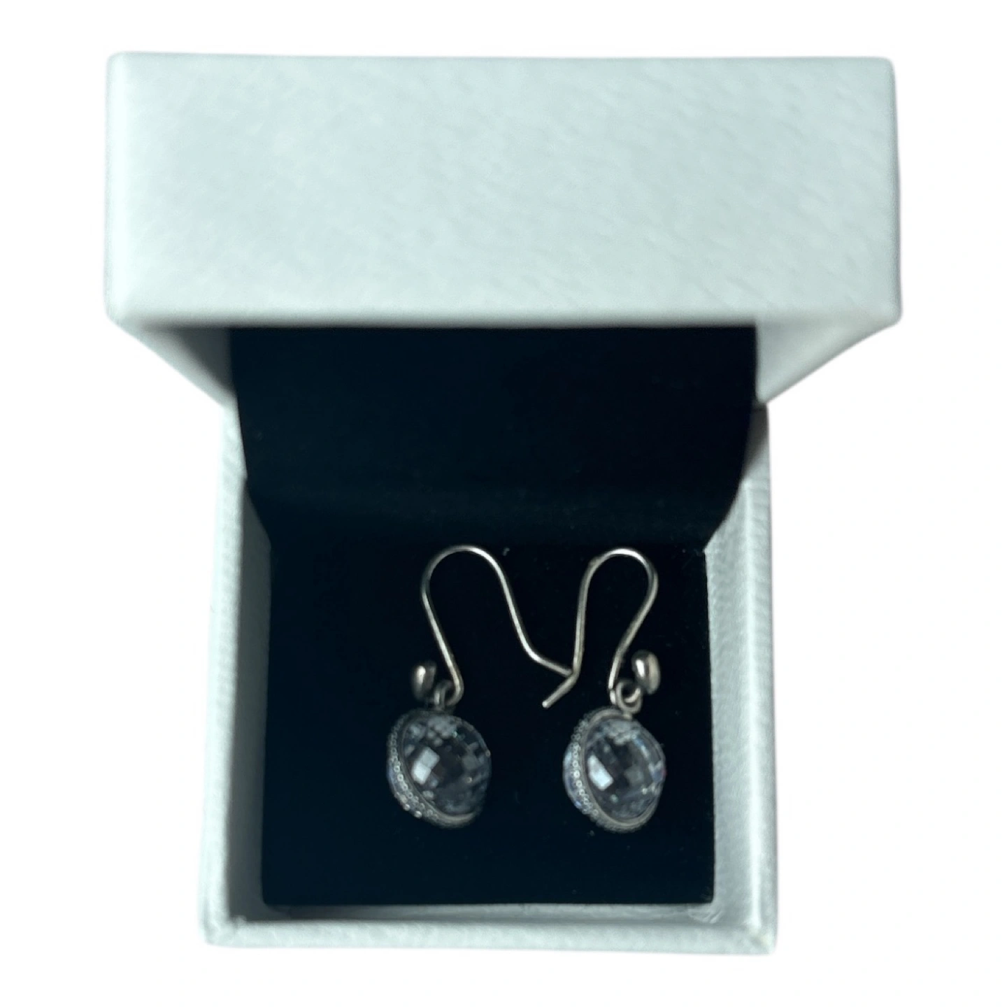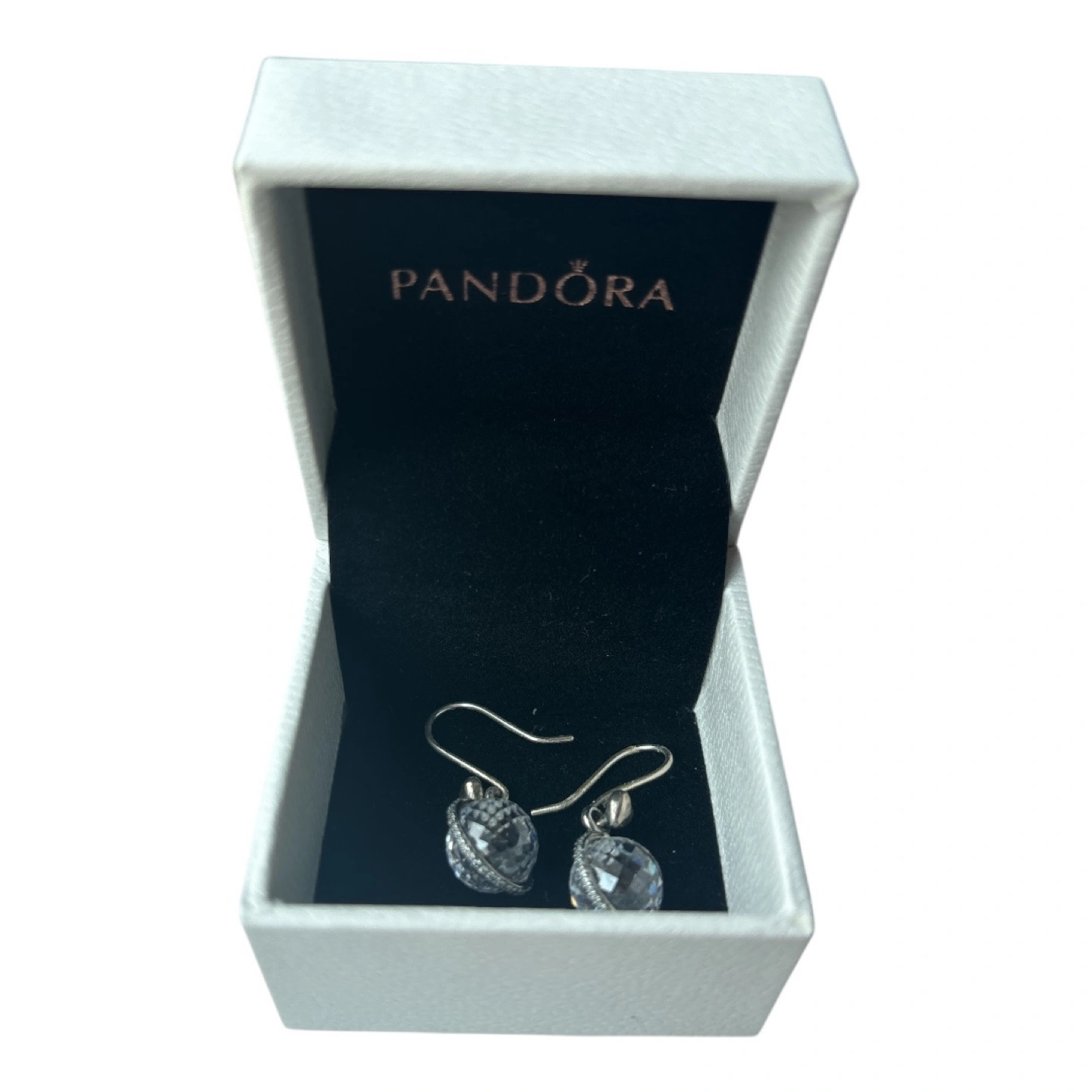 A beautiful pair of Pandora Create Your Charm Earrings with sparkly crystal disco 🪩 ball charms. The crystal ball charms are removable from the hook, it can be replaced with any charms from pandora. This set includes a pandora 925 silver necklace, it can be worn with different lengths alone or with charms of your choice. They come with in a Pandora box.