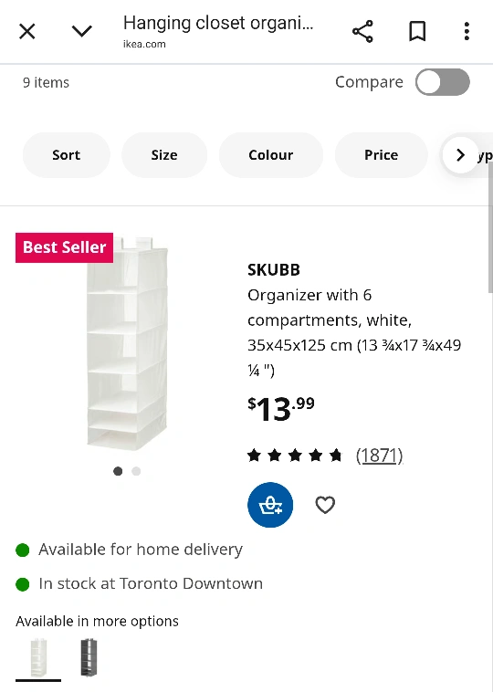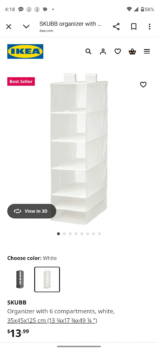 1000+White fabric hanging organizer. Six compartment storage. Great for organizing clothes and accessories. This would be perfect for creating a neat and tidy closet. I have Two value $13.99 + tax