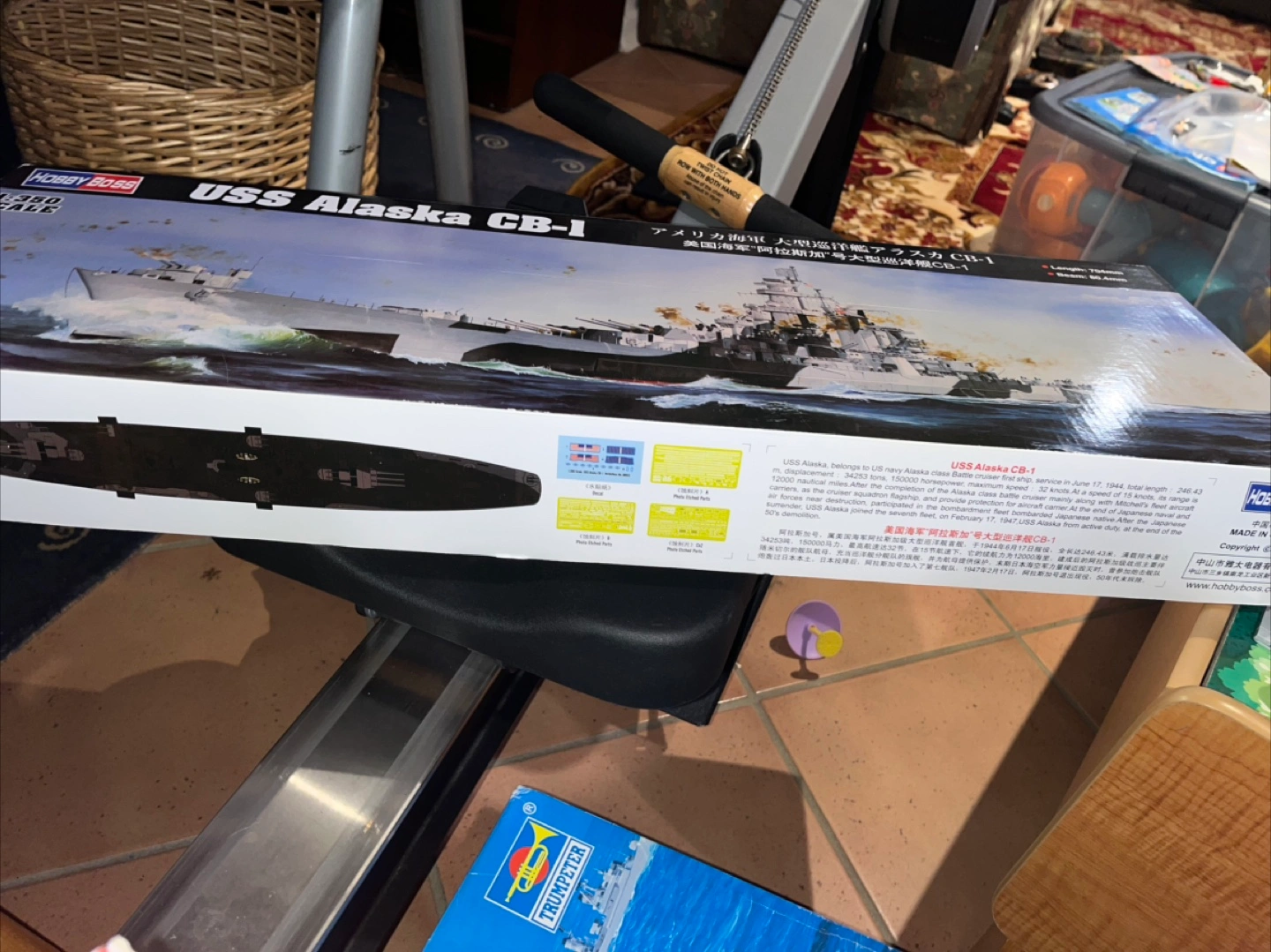 10Box shows the USS Alaska CB-1 with some information on it. Some of the box is still sealed. Building this model might be a pleasant way to spend your free time.