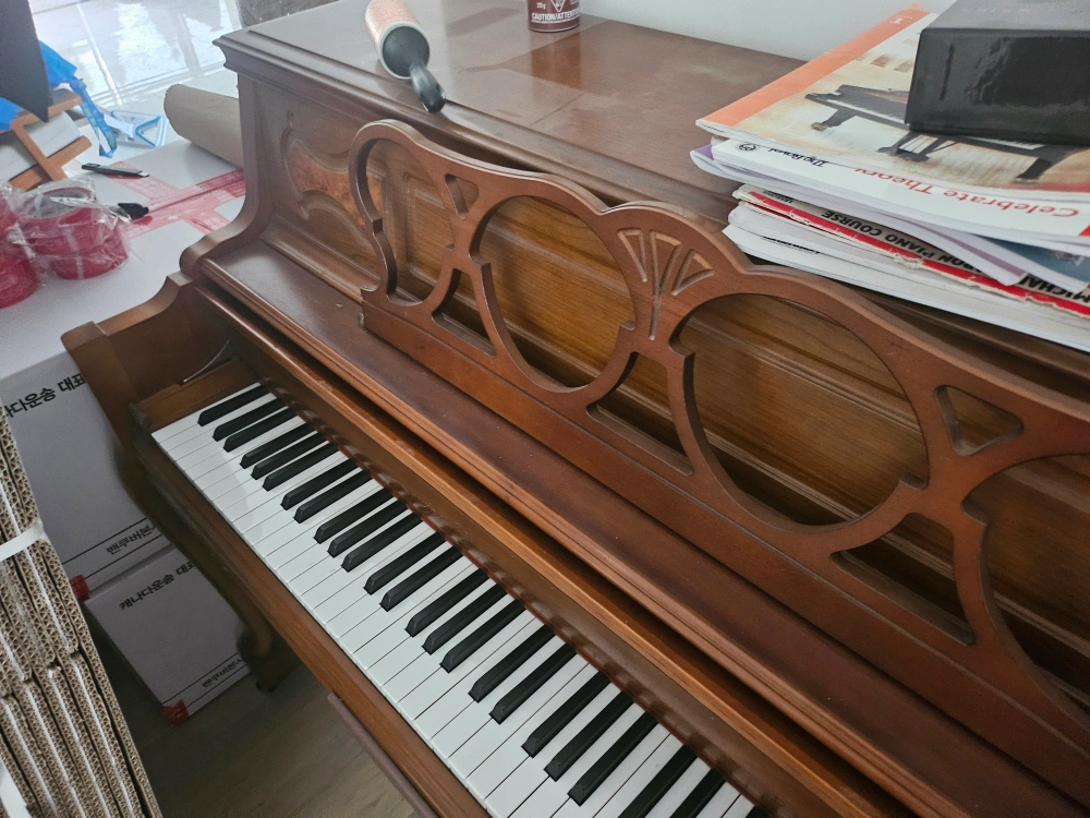 48A beautiful upright piano. Features a warm, wooden finish. Classic design with keys and pedals. Perfect for practicing your favourite melodies. The calming sound of the piano is perfect for a relaxing evening.