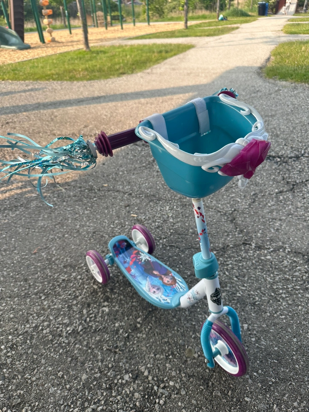 60Disney frozen scooter for a fun ride. Features a storage basket in the front. Still in great working condition.