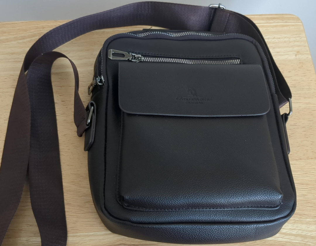 Stylish crossbody bag in brown. Comes with an adjustable strap. Features an external pocket, and a zipper closure. Measurements are 9 inches across and 10 inches in height. Cash only please.