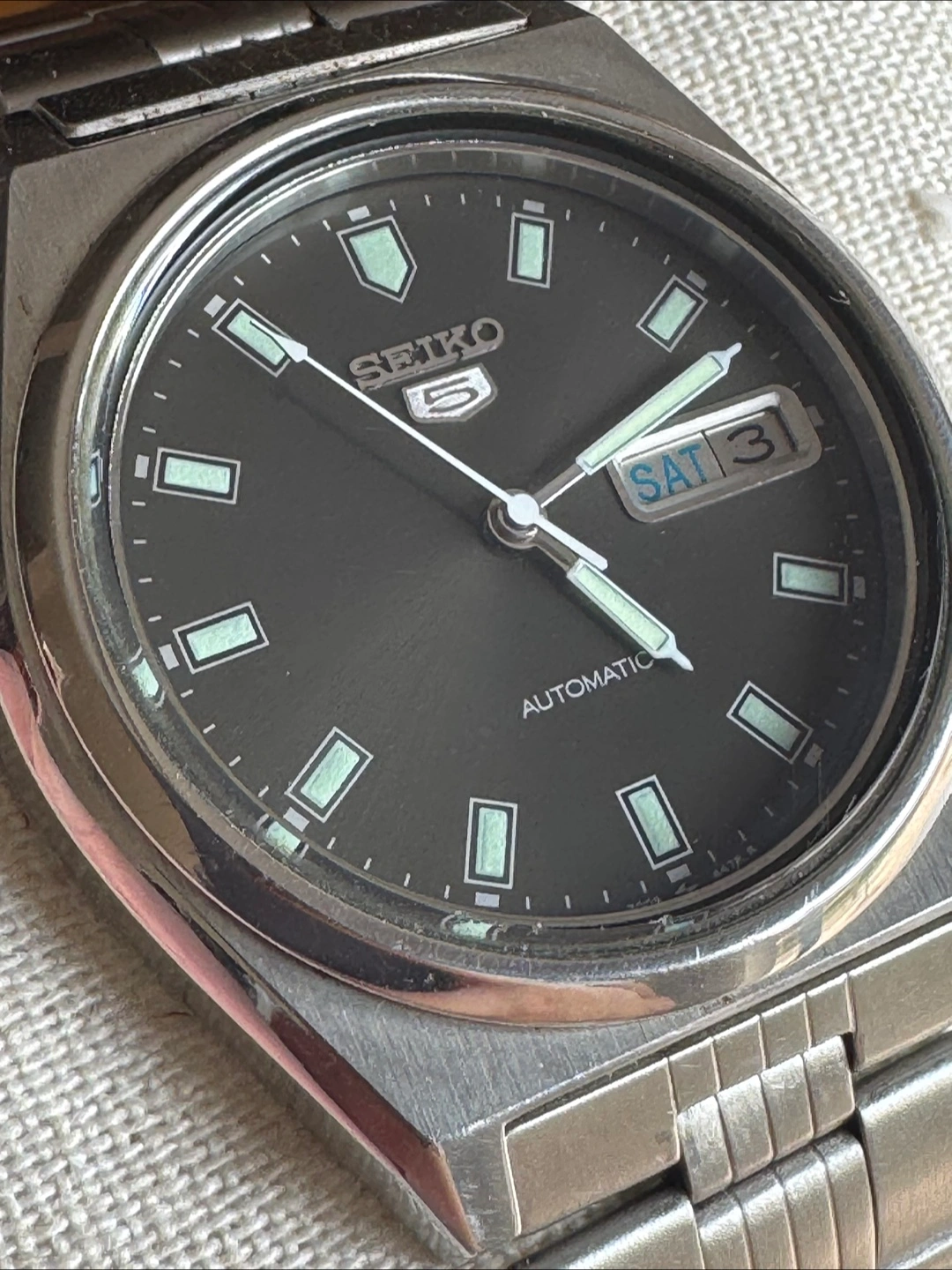 PLEASE READ DESCRIPTION FOR DETAILS AND SIZING BEFORE BUYING - Great condition, tested and fully functional, runs well - 37mm across case size, bracelet fits up to 6.75” wrist - Vintage - Automatic - Grey dial Price is firm. Pickup Markham or downtown Toronto. Can ship at buyers expense. No holds without deposit, first come first served. If you like this watch, check out my other listings for similar watches! Buy multiple for a small discount