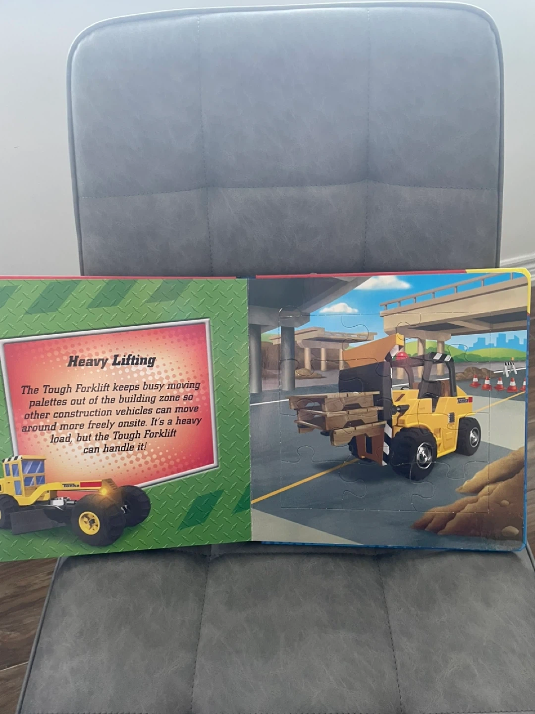 A puzzle truck book. Great read about trucks with Hans-on activity of puzzle.