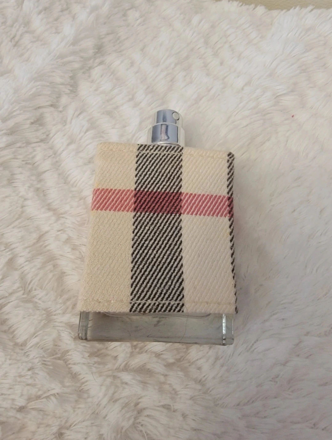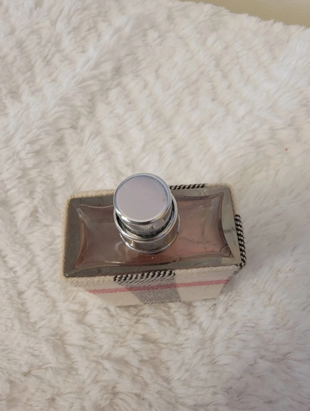 A perfume bottle with a checkered covering. Comes with a silver top and clear bottom. A great way to treat yourself to a luxurious scent experience.