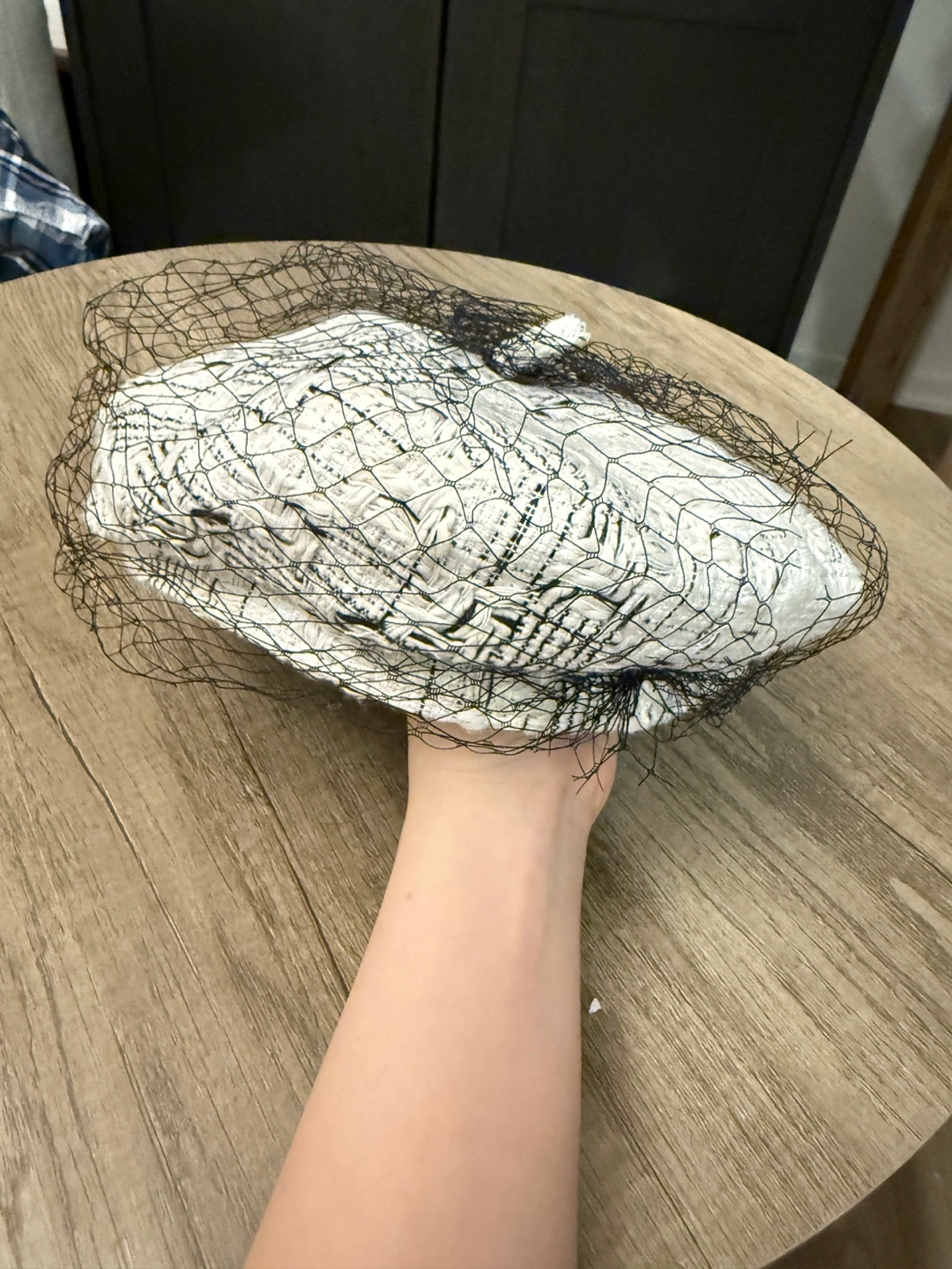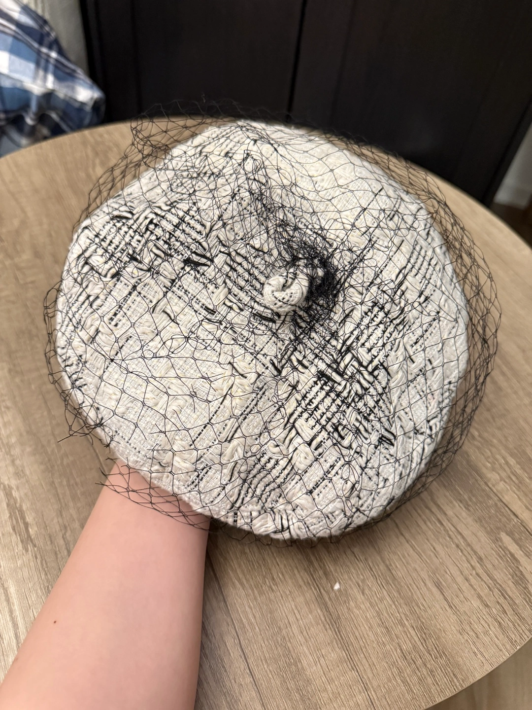 A stunning beret, in a cream and black weave. Features a black mesh over the top. It would be the perfect addition to add to your wardrobe.