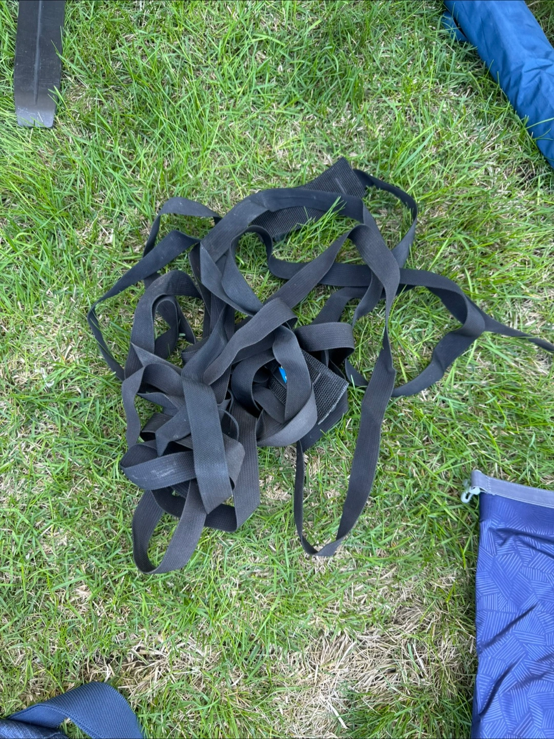 Black straps, bundled together. Likely used for securing items. Use this item for canoe or other outdoor gear to secure on the top of the car or other.