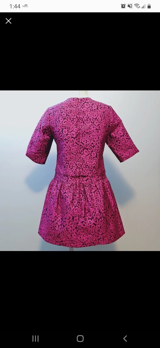 It's a typical size 4 dress from Marc Jacobs. Wore once or twice, couldn't find any signs of wear as it's rarely wore, 70% cotton, 30% silk. Very elegant materials.