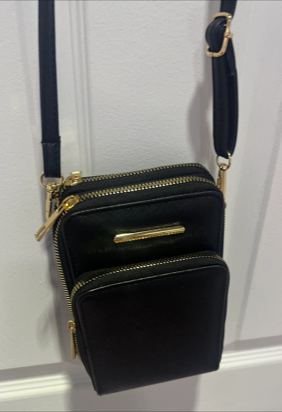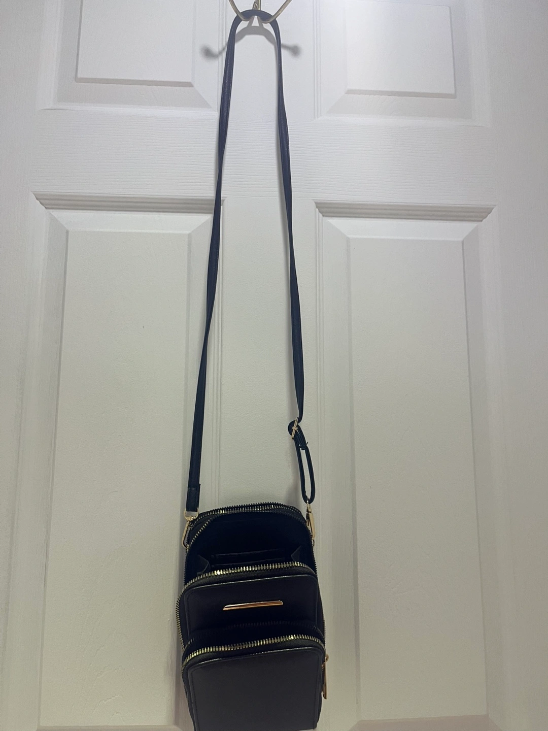 Black bag. Features multiple compartments. Crossbody strap. Perfect for carrying your essentials with ease. Used only 2 times.