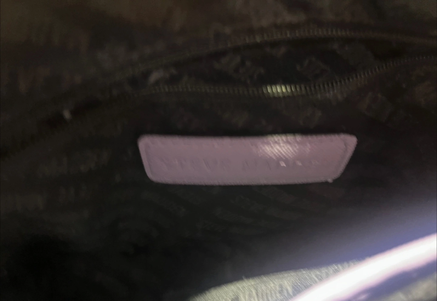 A beautiful purple crossbody bag. A zippered closure along the top. Silver-toned hardware. A chain strap. Inside, it's lined with a dark material. This purse is perfect for everyday use and going on a nice walk.