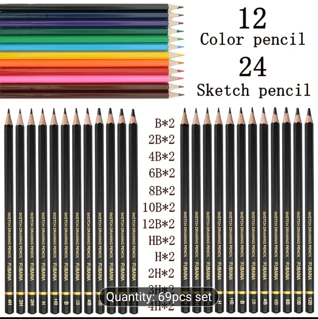 49 Pcs Professional Sketch Pencil with carry case and belt