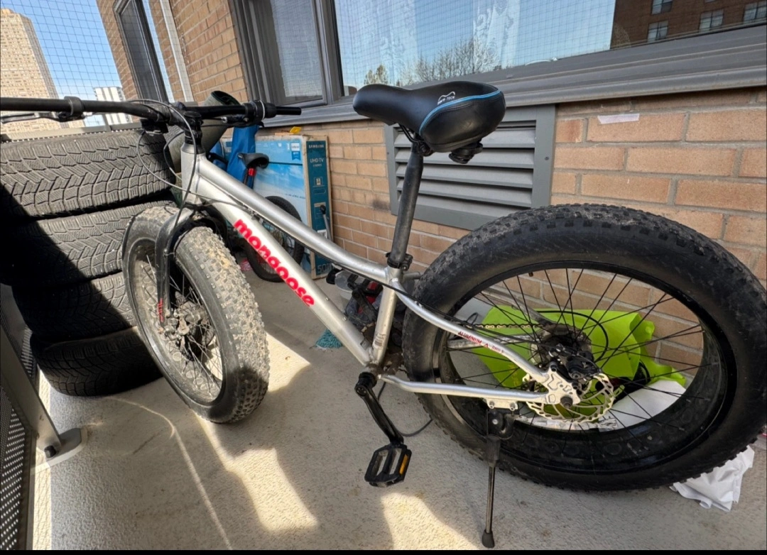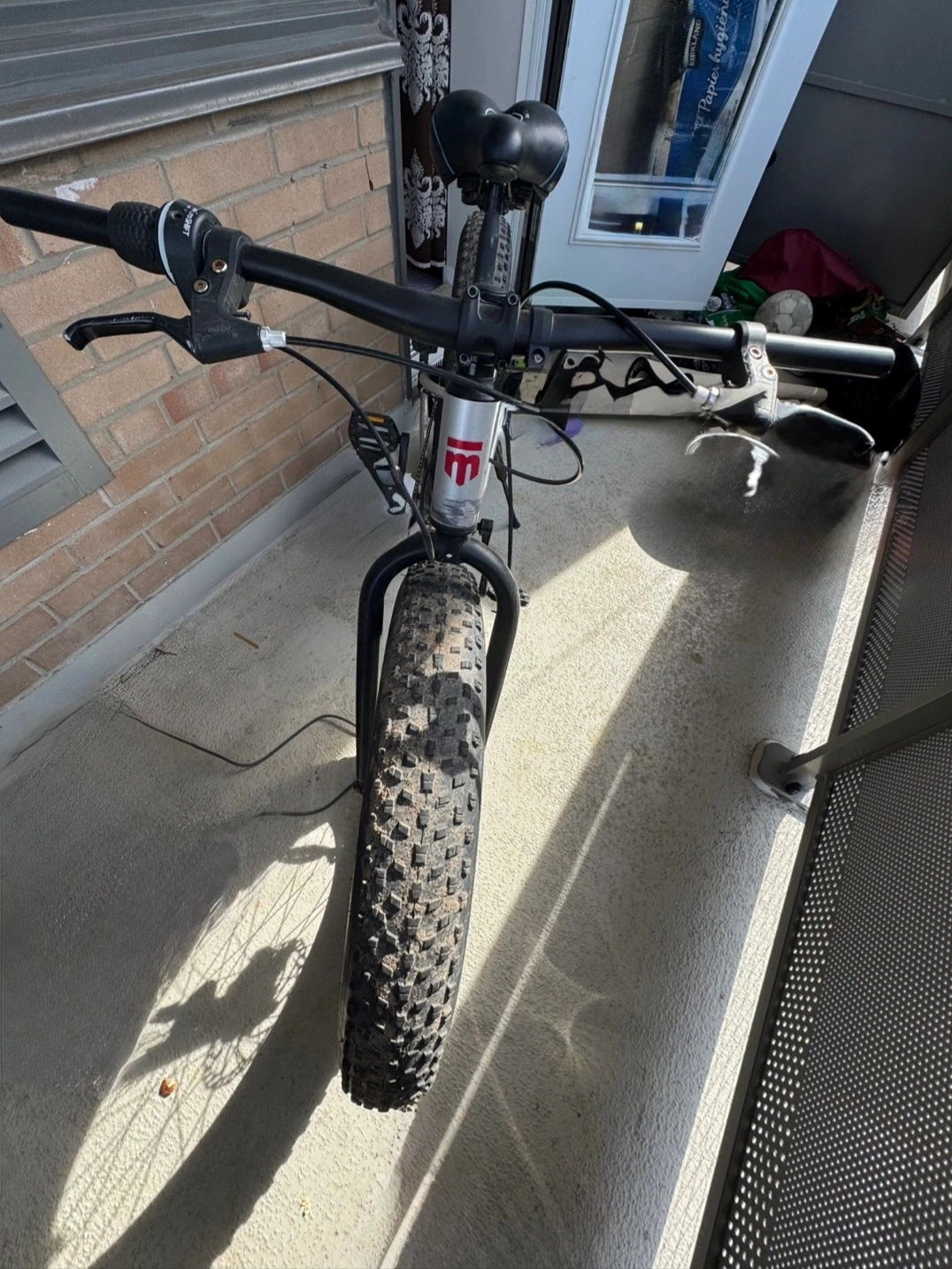 A great bike with thick tires. Perfect for leisurely rides on trails. The bike features a sturdy frame, disc brakes, and a comfortable seat. Perfect for someone who is Under 5'7". New tire. fully safetied and ready to ride