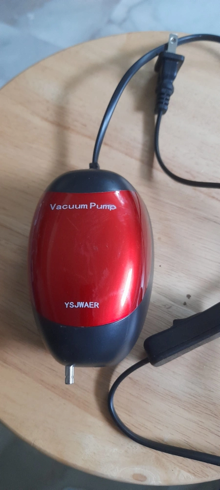 152A small vacuum pump. The pump is red and black in colour. It includes a power cord with a standard plug. This pump can be very useful for cleaning and will help you get the job done with ease.