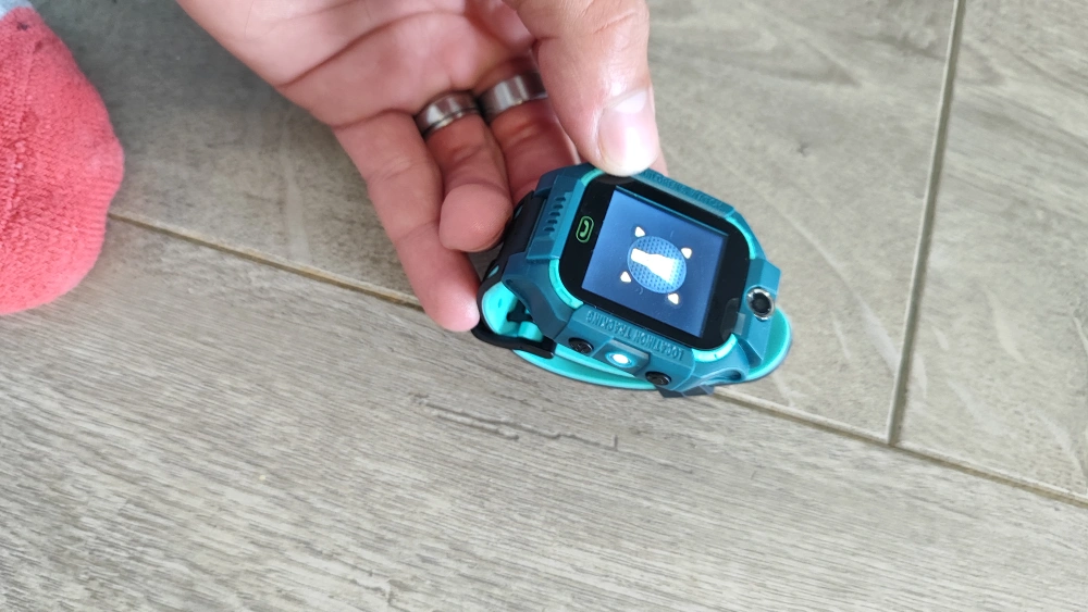 A smart watch with a vibrant blue design. Features a touch screen display. The watch has a camera and a band. You can give this watch to a child and they can learn to have fun and be safe at the same time.