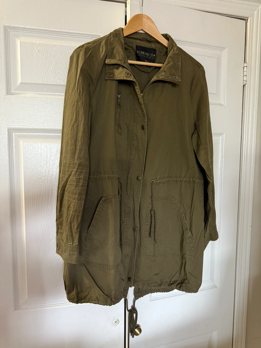 Olive green jacket. Featuring long sleeves and multiple pockets. A relaxed fit perfect for cooler weather. You could wear this jacket on your evening stroll.plus size 0X