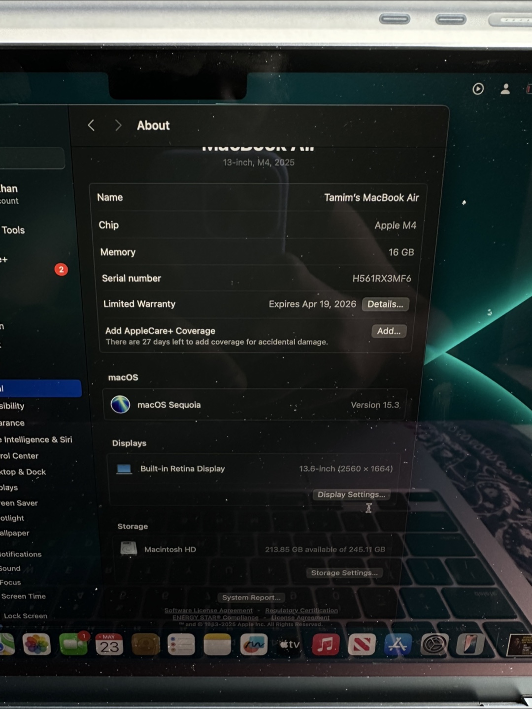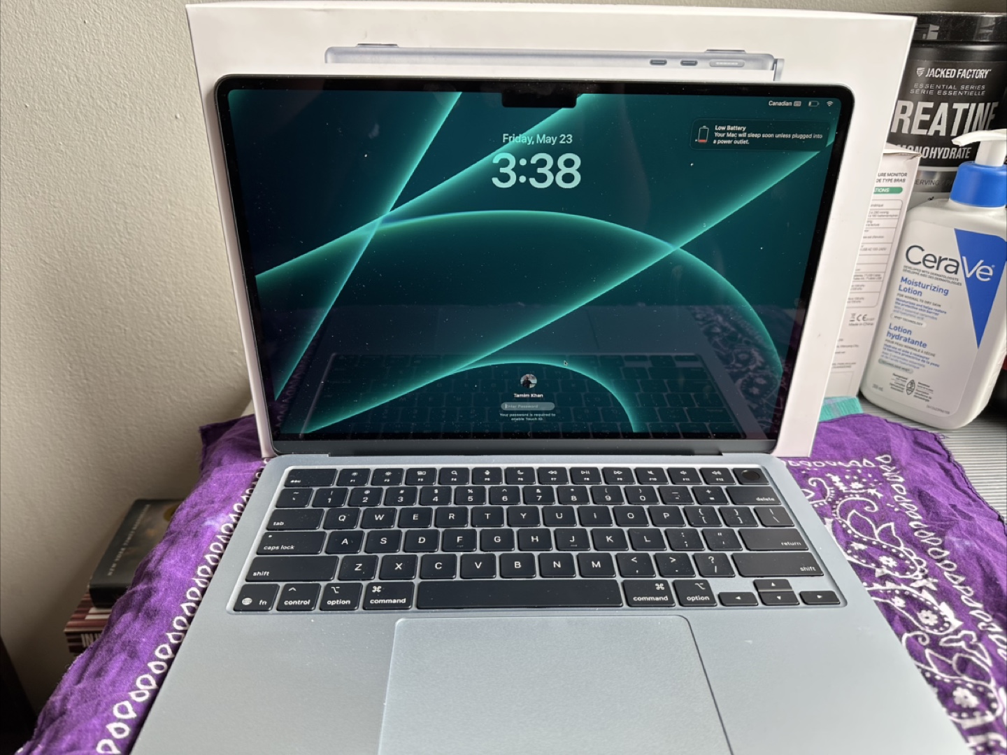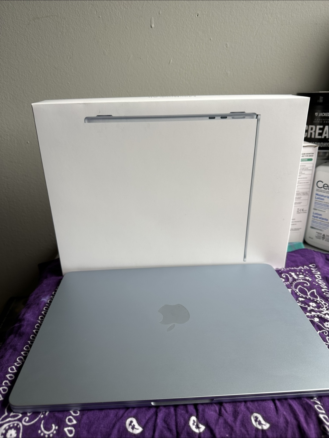 A gorgeous Apple MacBook Air. Sleek, silver, and modern. Comes with its original box. Fully fresh charging cycle in 5/6 selling it cause need cash