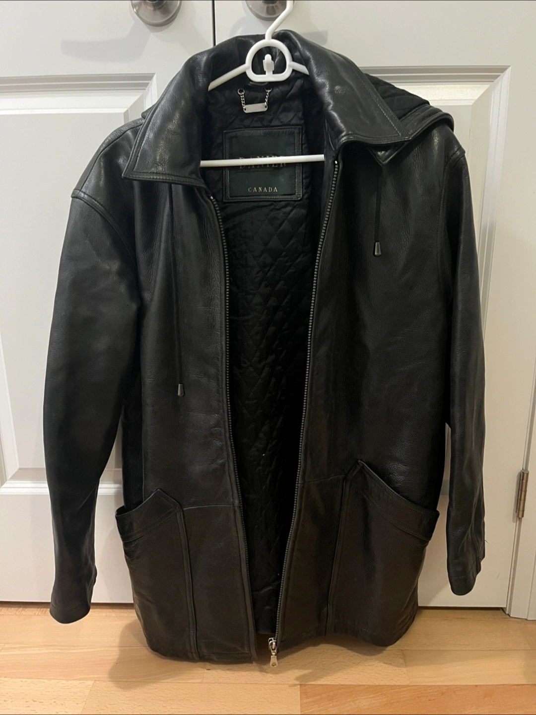 Danier Black Leather Jacket with Hood