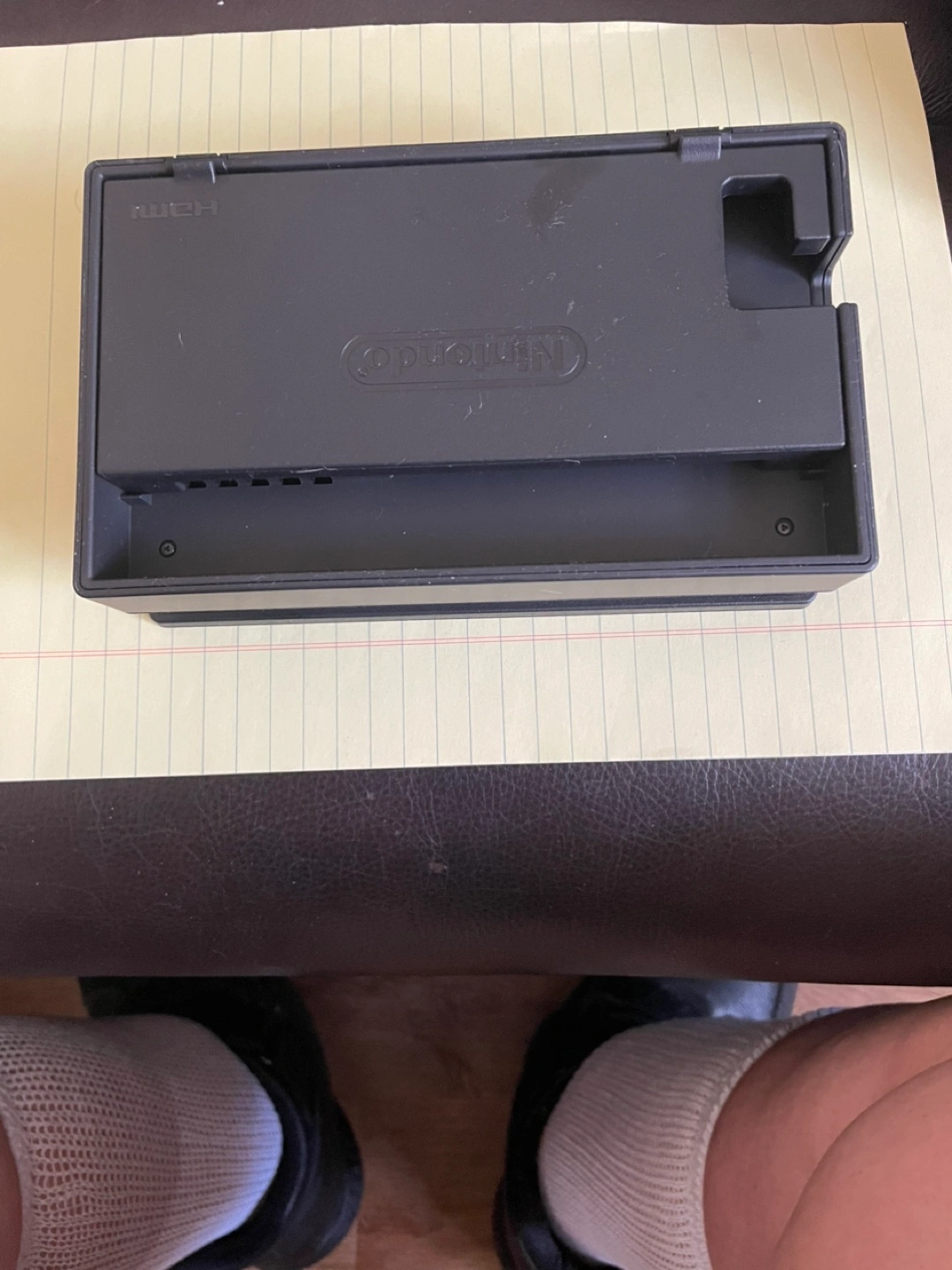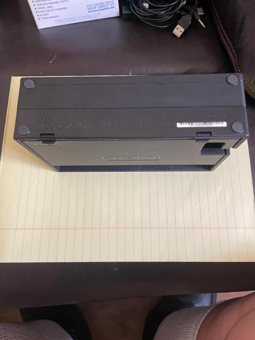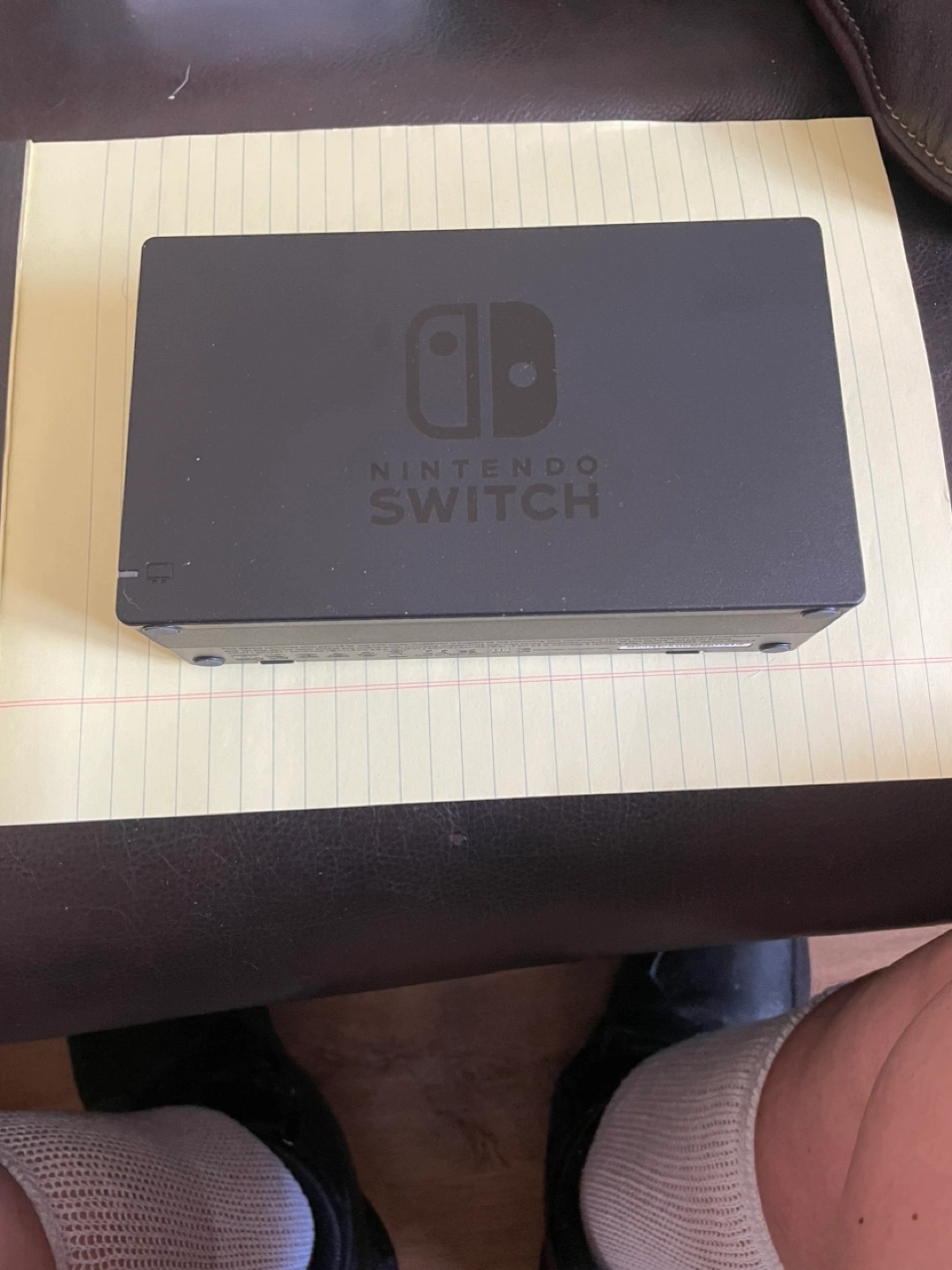 75Black Nintendo Switch dock. Has multiple ports. The Nintendo logo is visible. Makes a nice addition to your gaming setup.