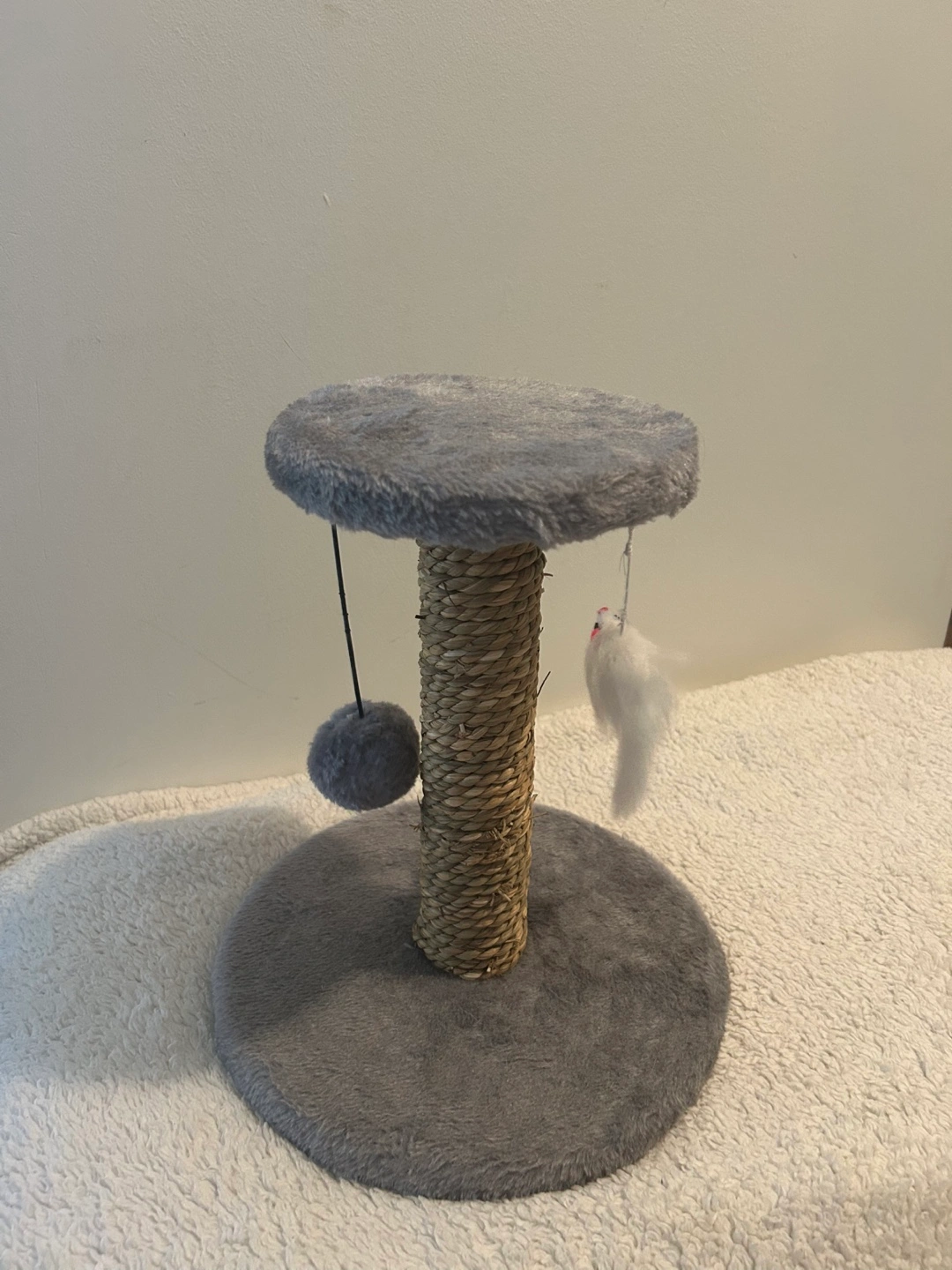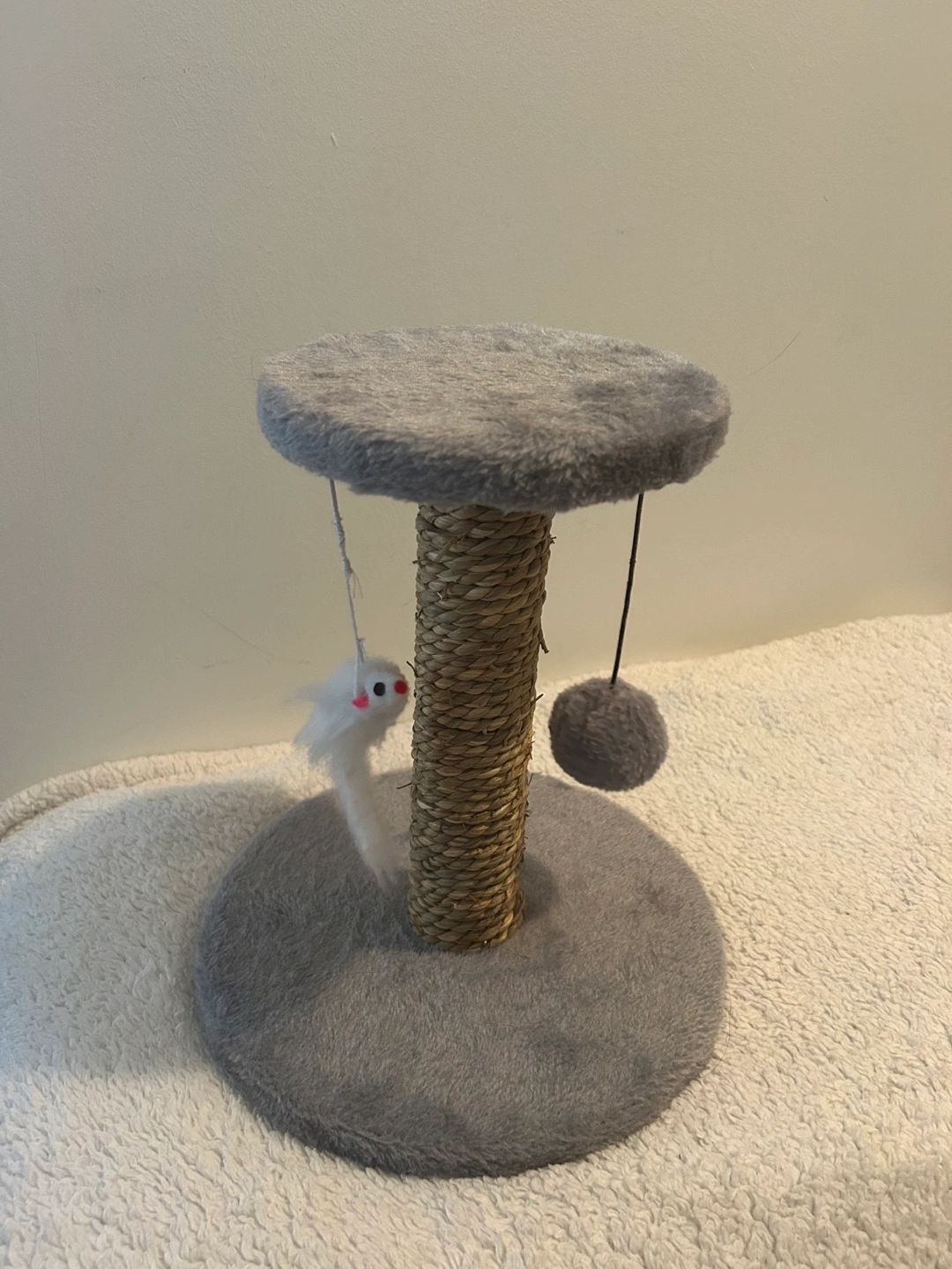 359My cat was too big for this scratcher, but it’s a good size for kittens! Dimensions: approx 30cm tall, base diameter 10inches, top diameter 7inches