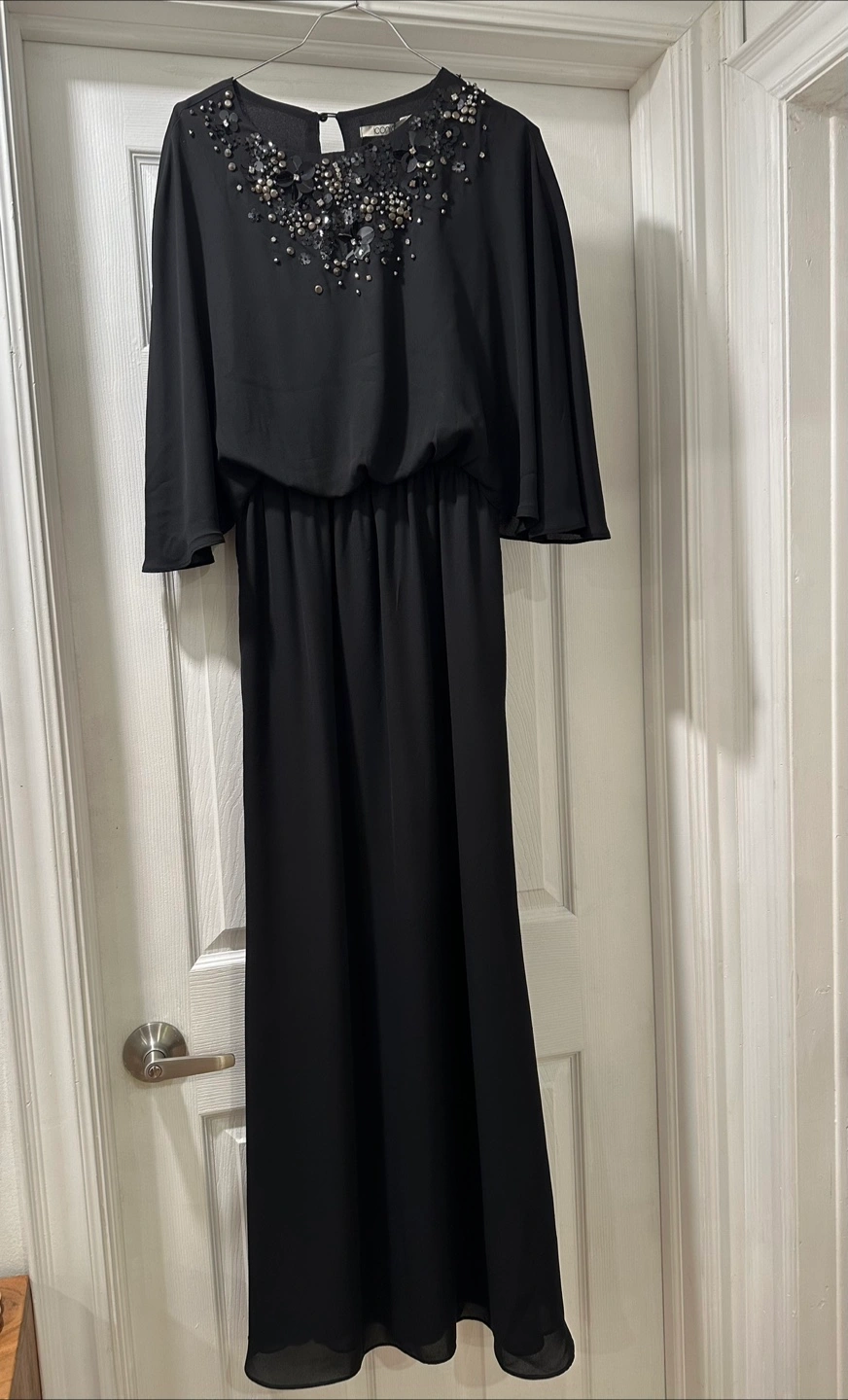 71Brand new elegant black dress. Embellishments around the neckline. Long sleeves and a waistline. Perfect for a special occasion Bought it from Dubai Price is firm