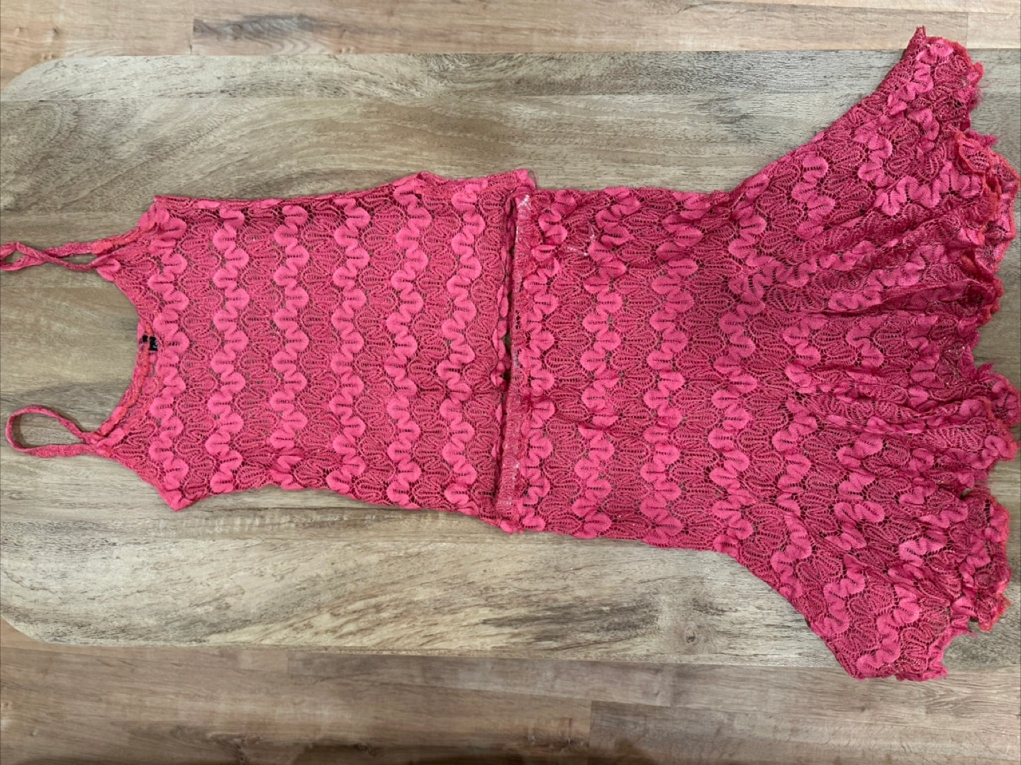 Pink lace top and skirt set