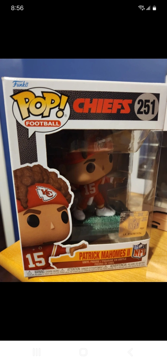 A Funko Pop! figure. Patrick Mahomes II in a Chiefs uniform. The figure is still in its original packaging, displayed in a clear box. It can be a perfect addition to your collection or a thoughtful gift for a friend.
