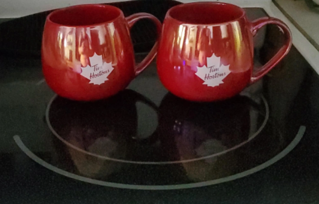 Add these beautiful iridescent red Tim Hortons mugs to your collection! These two (2) 12 oz mugs feature the iconic maple leaf and are original pieces from 2020 that were priced at $45 each.