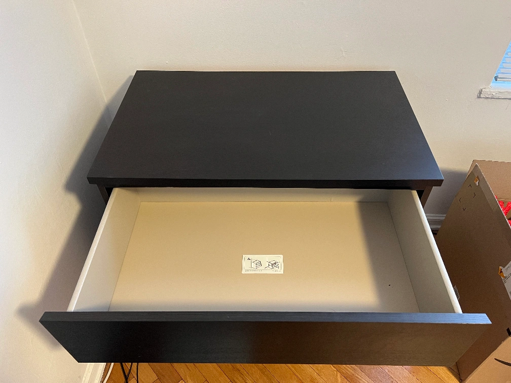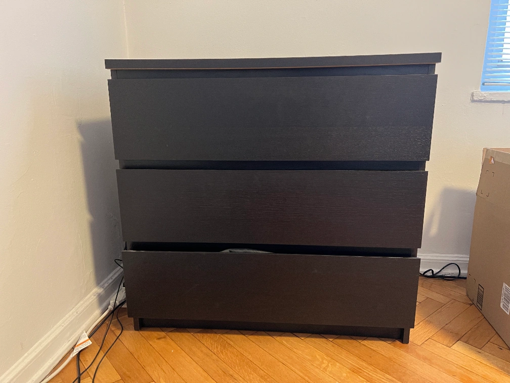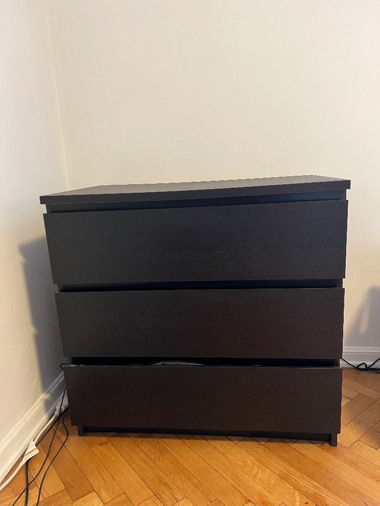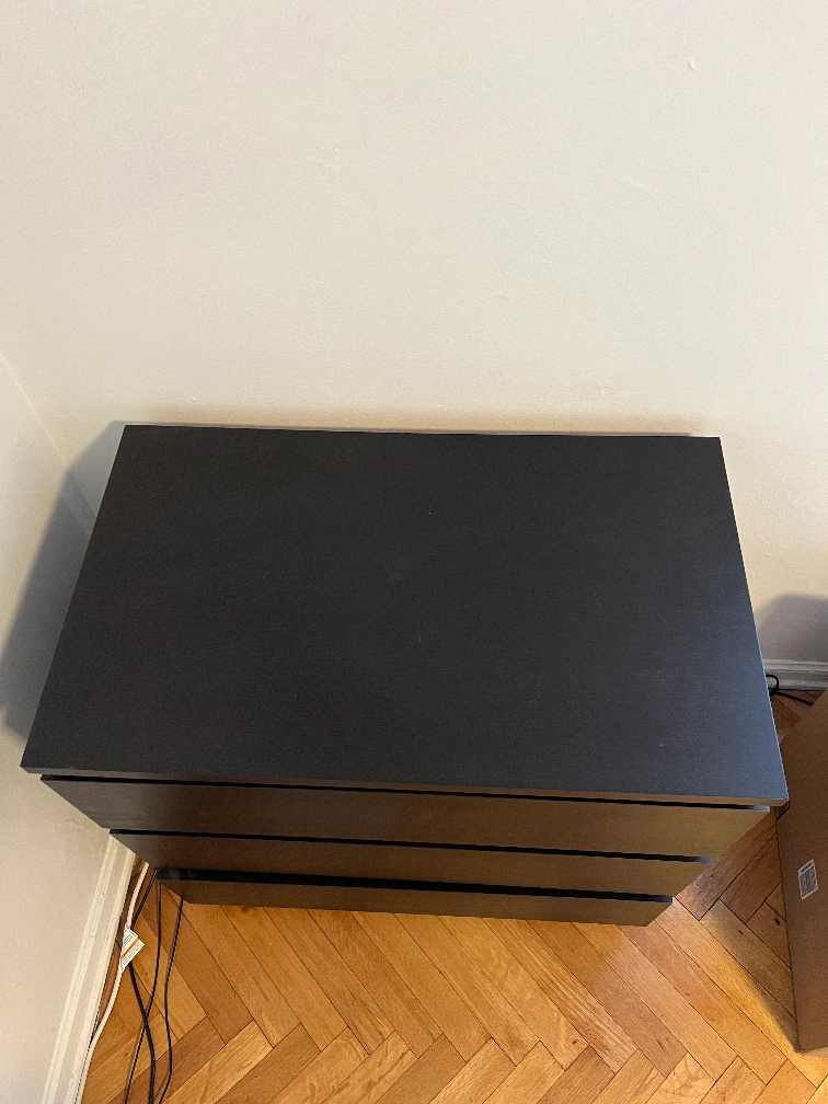IKEA Storklinta 3-drawer dresser in black; bottom drawer squeaks a bit when closing