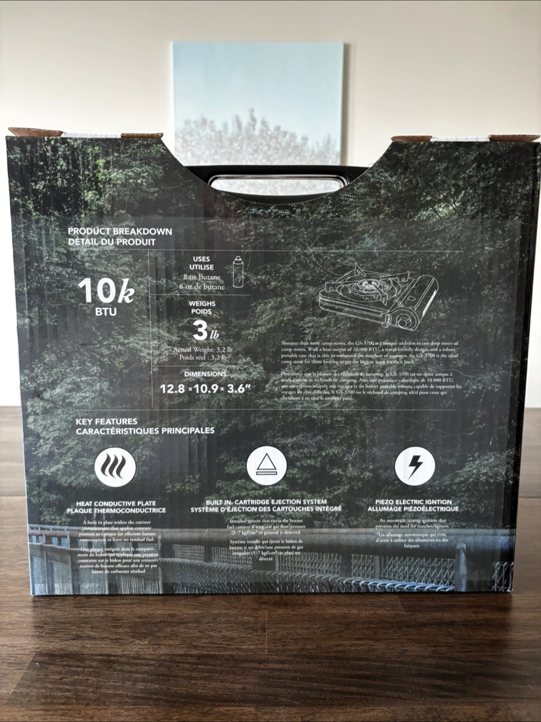 GasOne GS-3700 Portable Butane Camp Stove. 10,000 BTU’s, with a built in cartridge ejection system that detects if there’s irregular gas flow and an automatic startup ignition that prevents the need for matches/lighters.