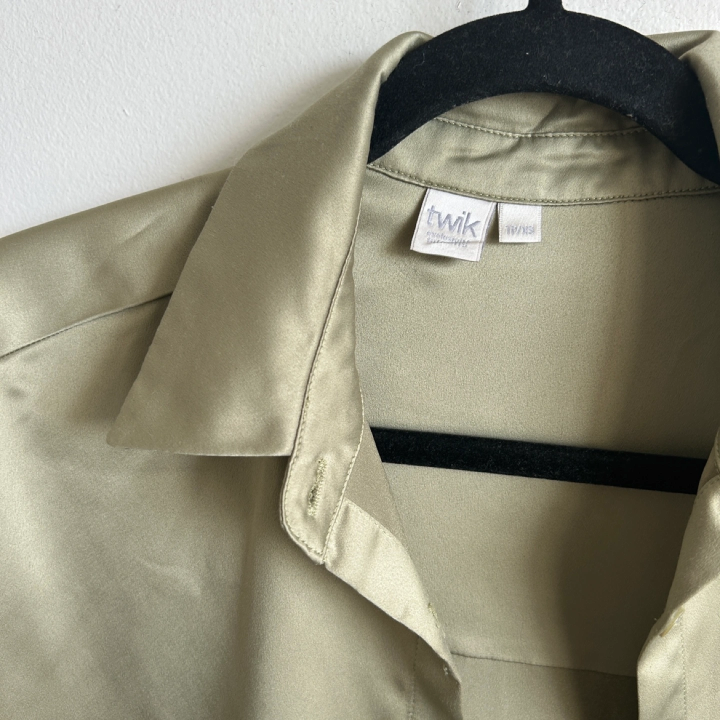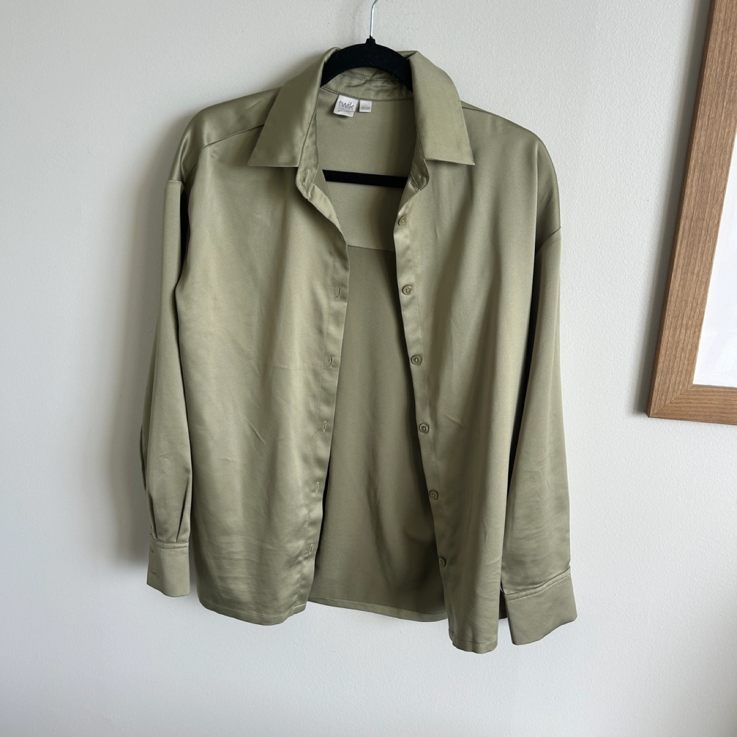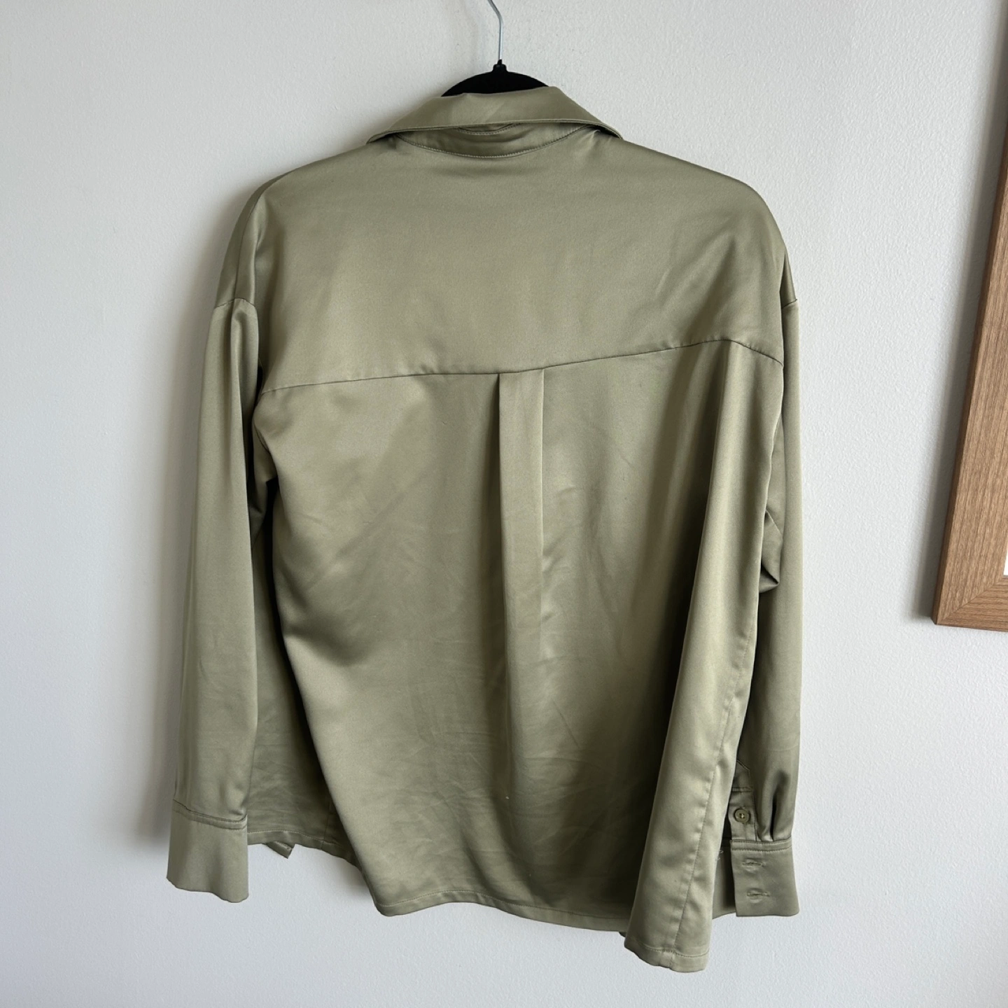 Long sleeve satin button-up shirt. Buttoned cuffs. Relaxed fit. An effortless piece for both casual or formal occasions.