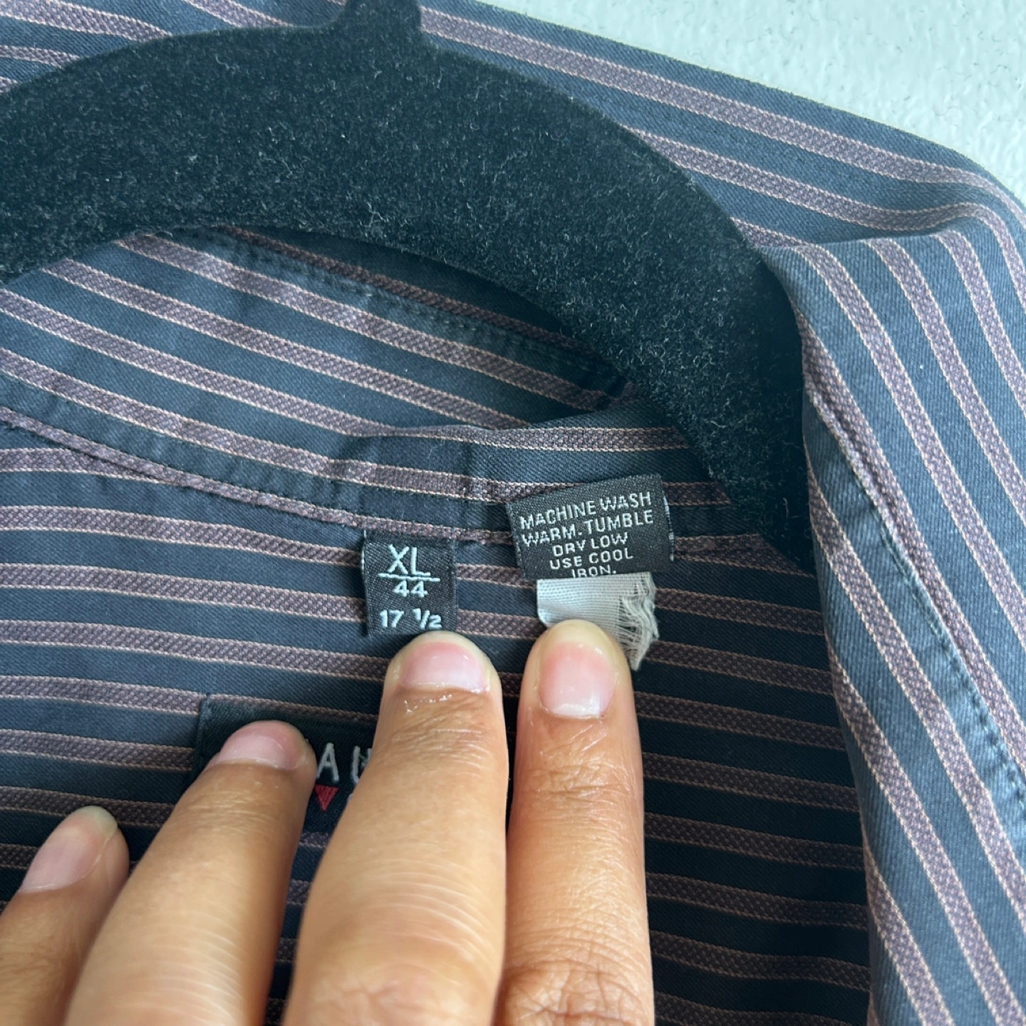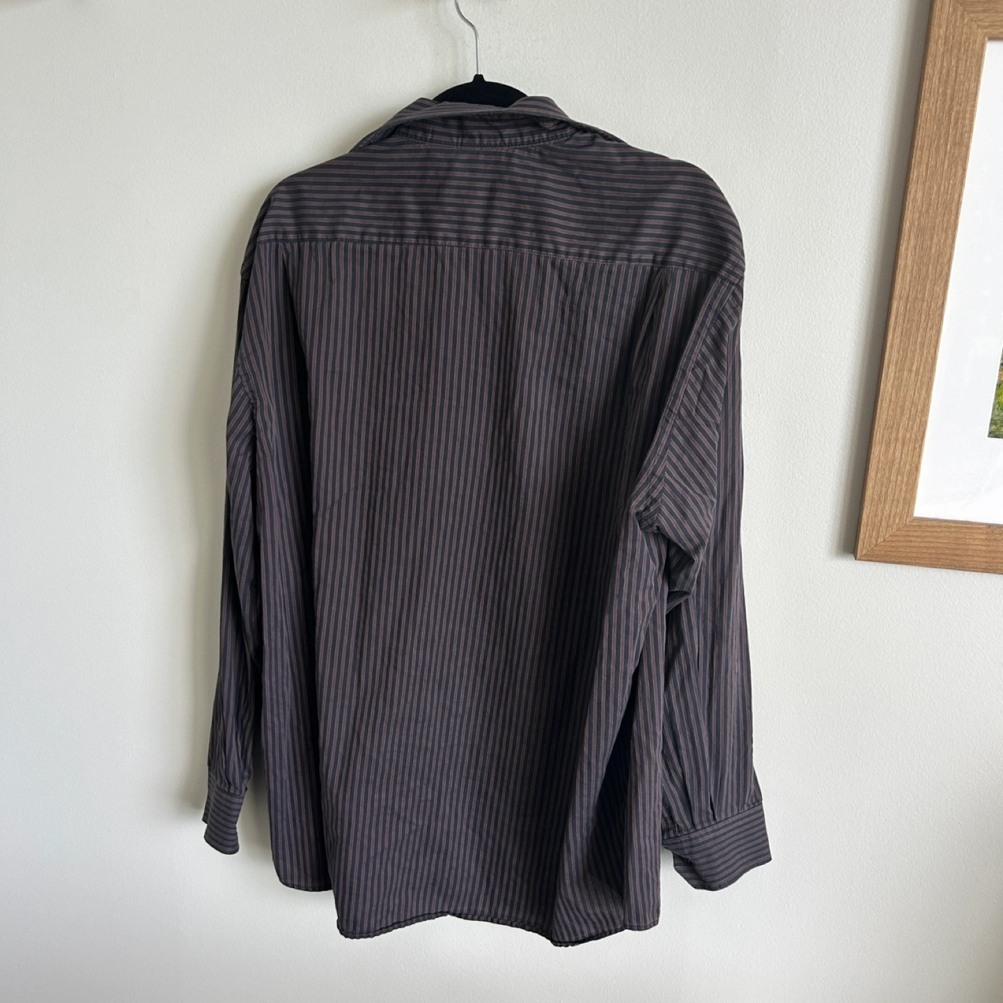 This striped button-up shirt in size XL, will be a great addition to any wardrobe. Featuring long sleeves and a classic collar. A great shirt for all occasions, allowing one to feel comfortable and stylish.