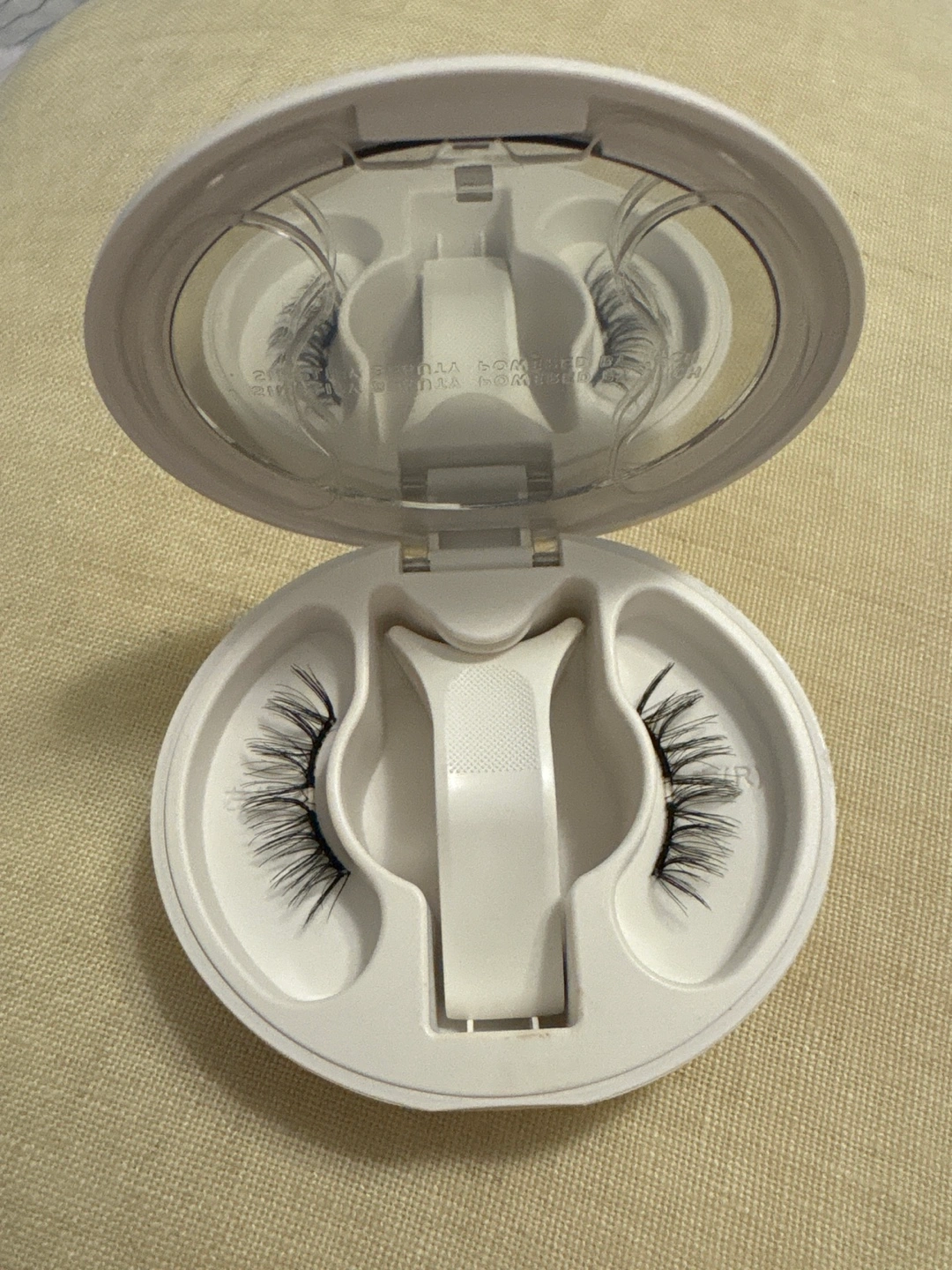 A WOSADO false eyelash set, new and unused. It comes in a white round compact case with a mirror and space for the lashes. Applying lashes can be a fun way to boost your confidence.
