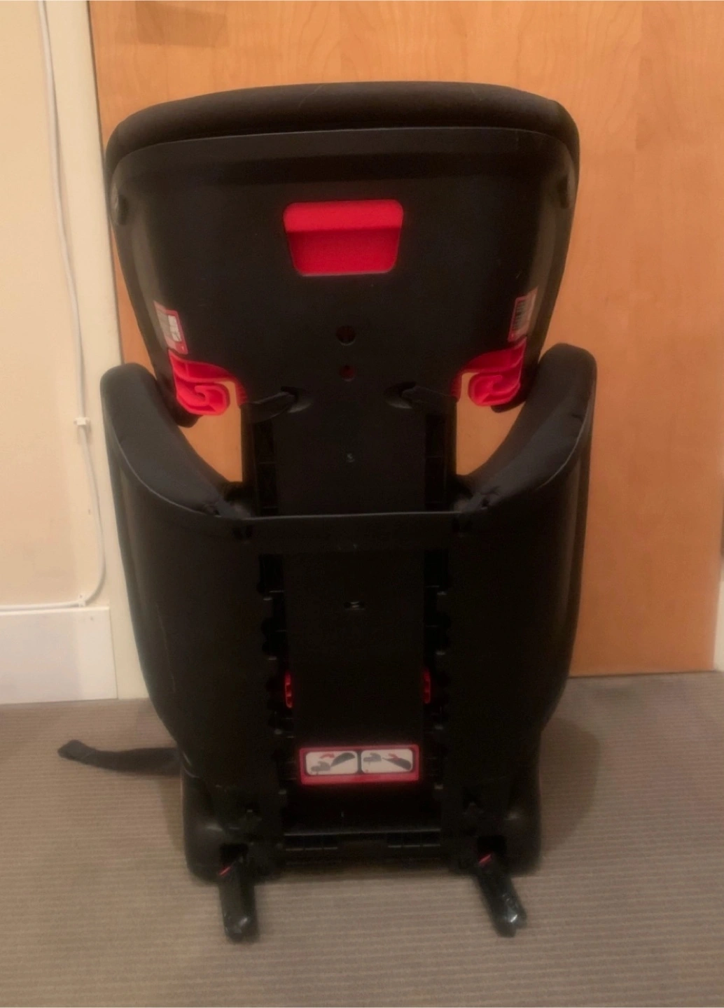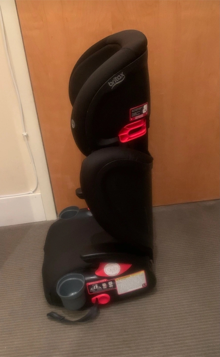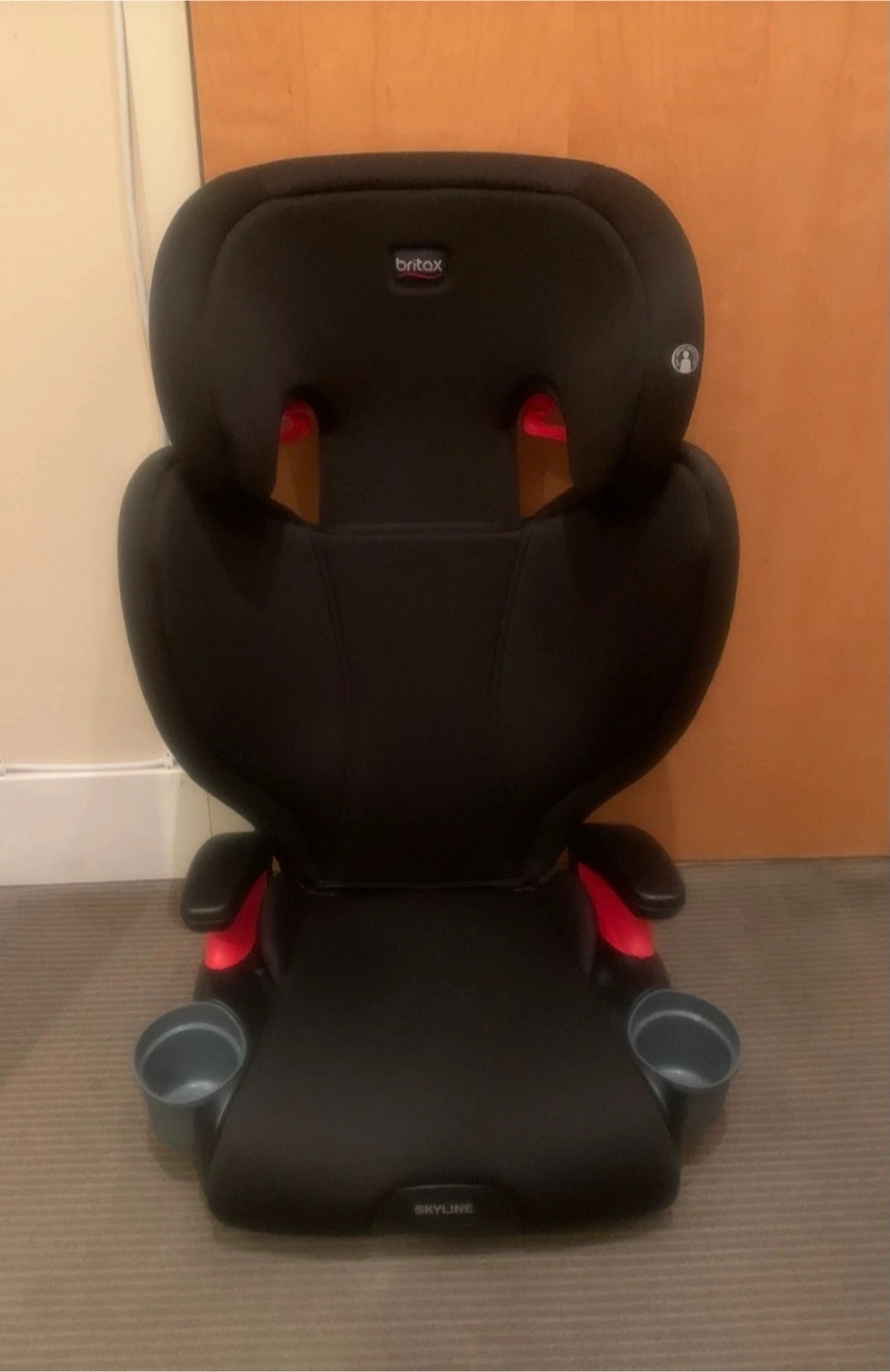 168Britax Skyline 2-Stage Belt-Positioning Booster Car Seat. This black booster seat provides comfort and safety for your child during car rides. Featuring red accents and cupholders, the seat is in very good condition. The seat features a full back and can be converted to a backless booster seat for flexibility. It is easy to install and suitable for a variety of vehicle types. Pick up at Eglinton in Ave east at Bayview.