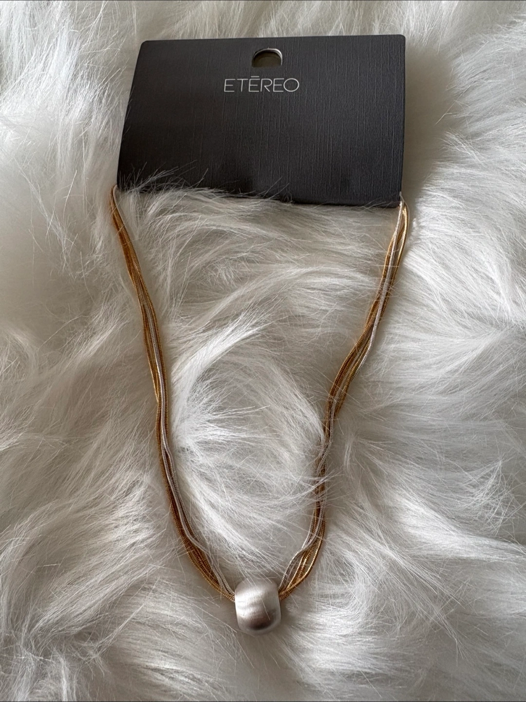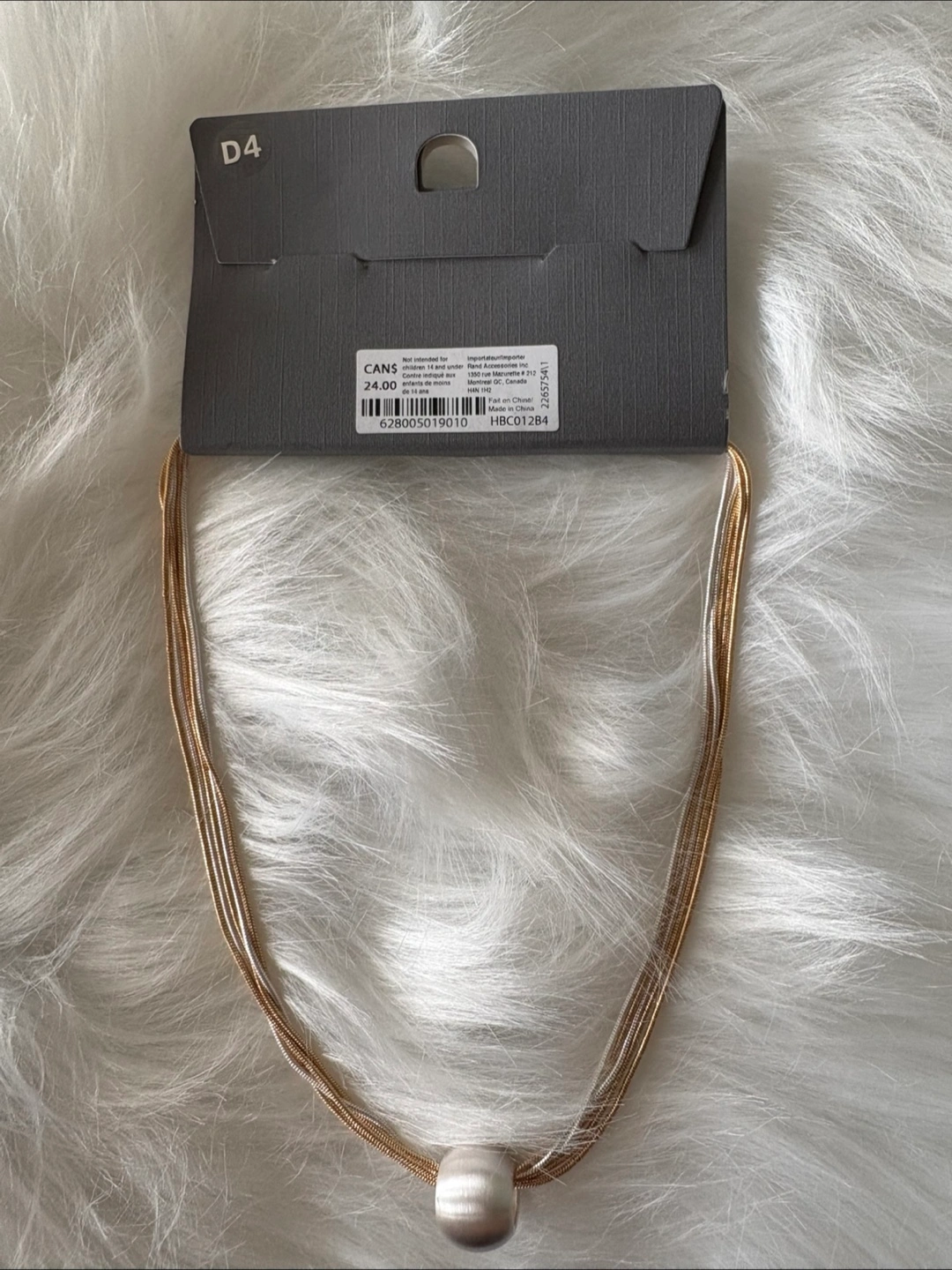 A delicate necklace with a subtle design. Features multiple strands and a pendant. It would look so lovely worn with a simple blouse.