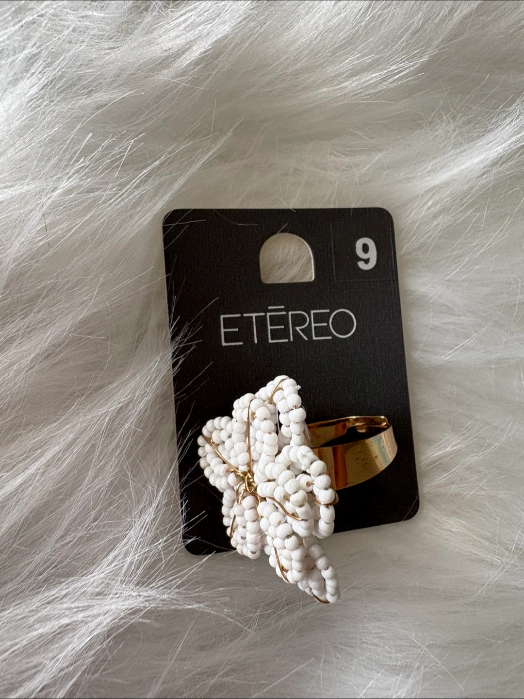 Ring with a gold band. The white beads add a delicate touch. Add a little sparkle to your day with this ring.