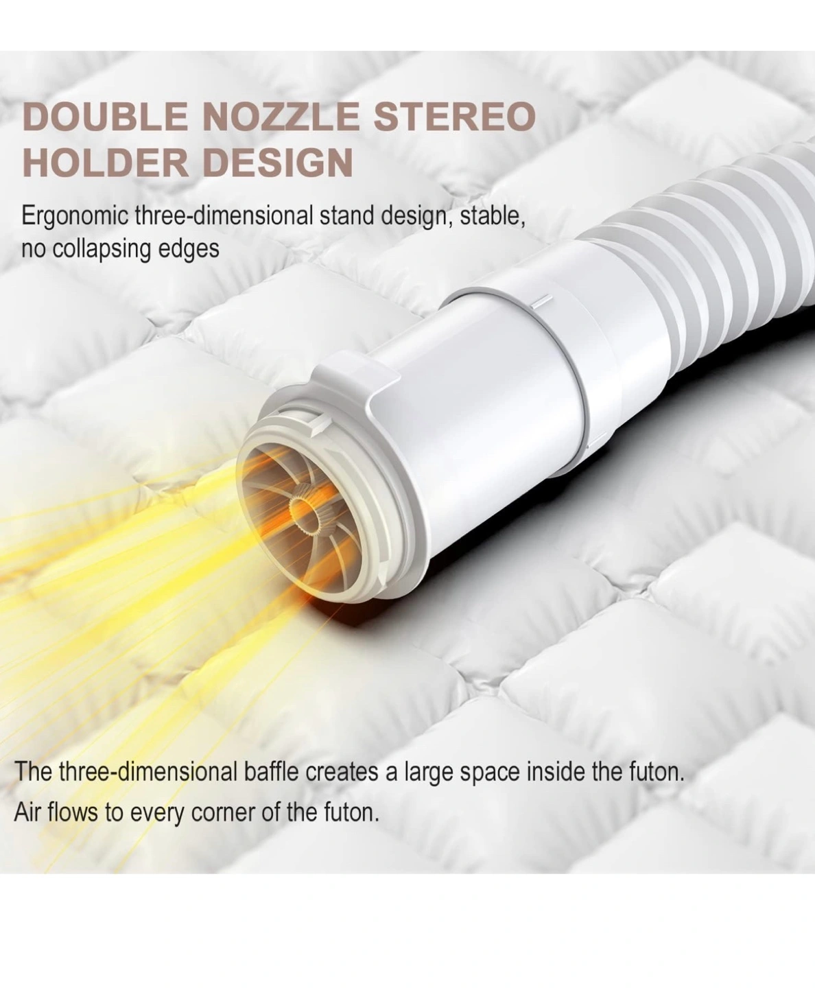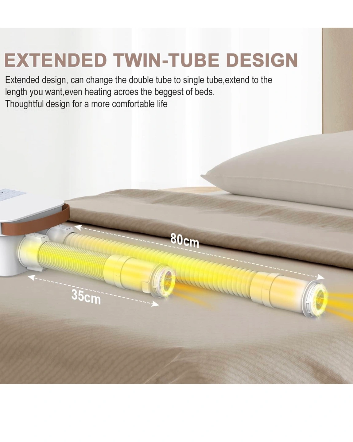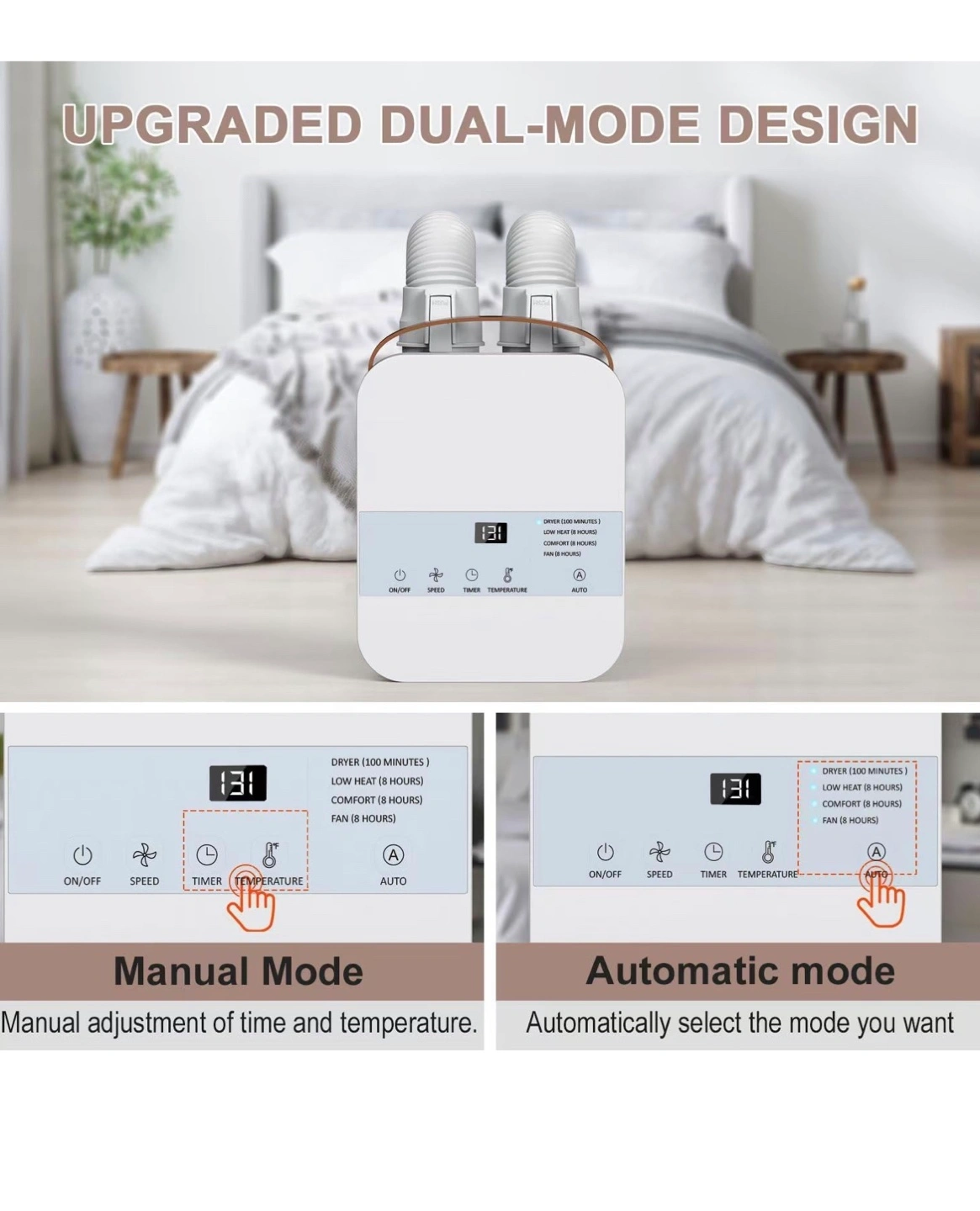 Blanket warmer. Dries and refreshes. Warms and comforts. Includes double nozzles and an extended twin-tube design. Features manual and automatic modes. You can use it nightly to make your bed even more inviting.