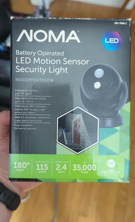 NOMA LED motion sensor security light. Never used. Battery operated and wall mountable (box does not include screws/mounting gear)